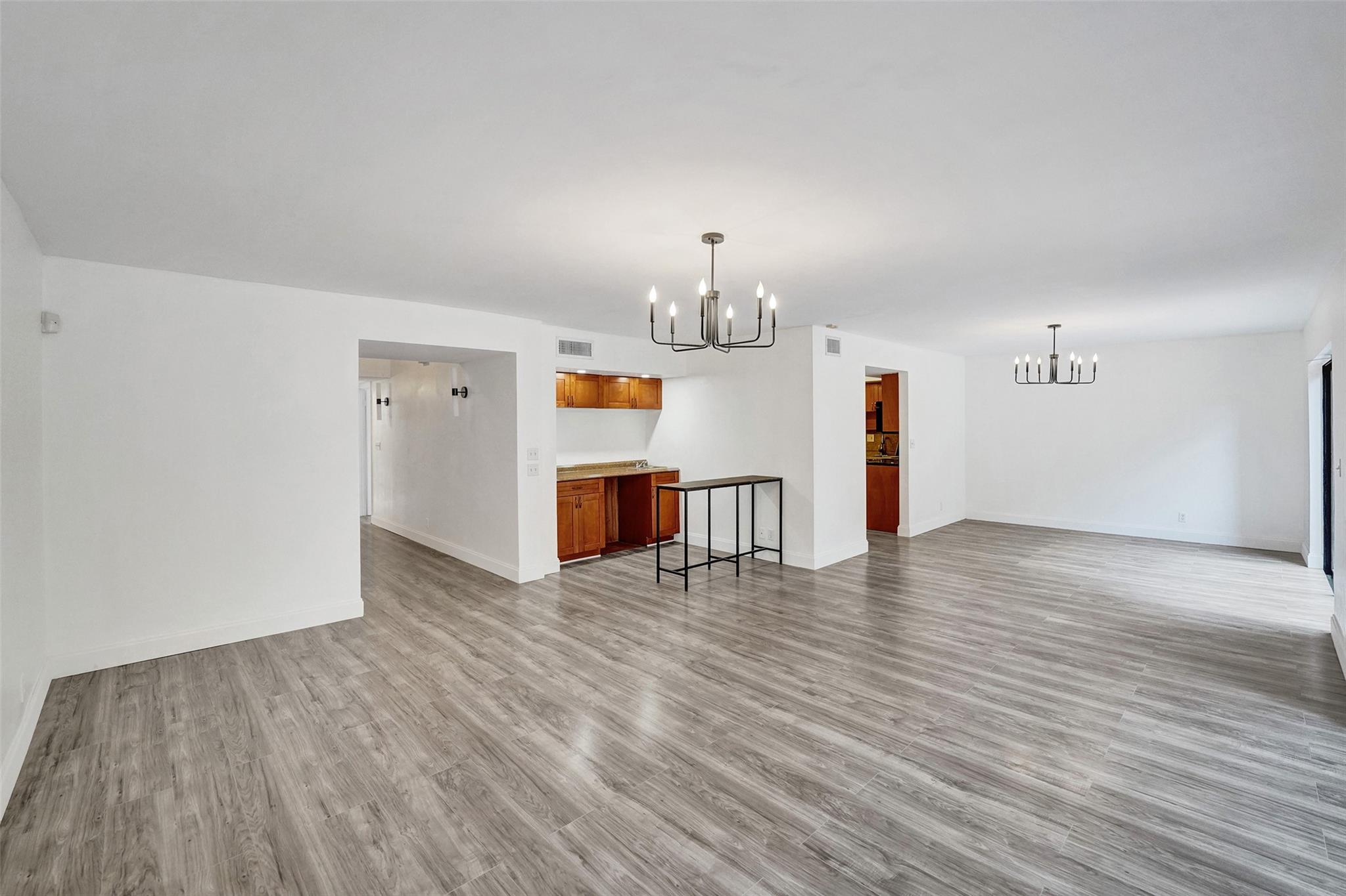Recently renovated, the bright & light lg open Living & Dining Area w/ a wet Bar is great for entertaining. The updated Kitchen has contemporary cabinetry, countertops & a full-size Washer & Dryer.