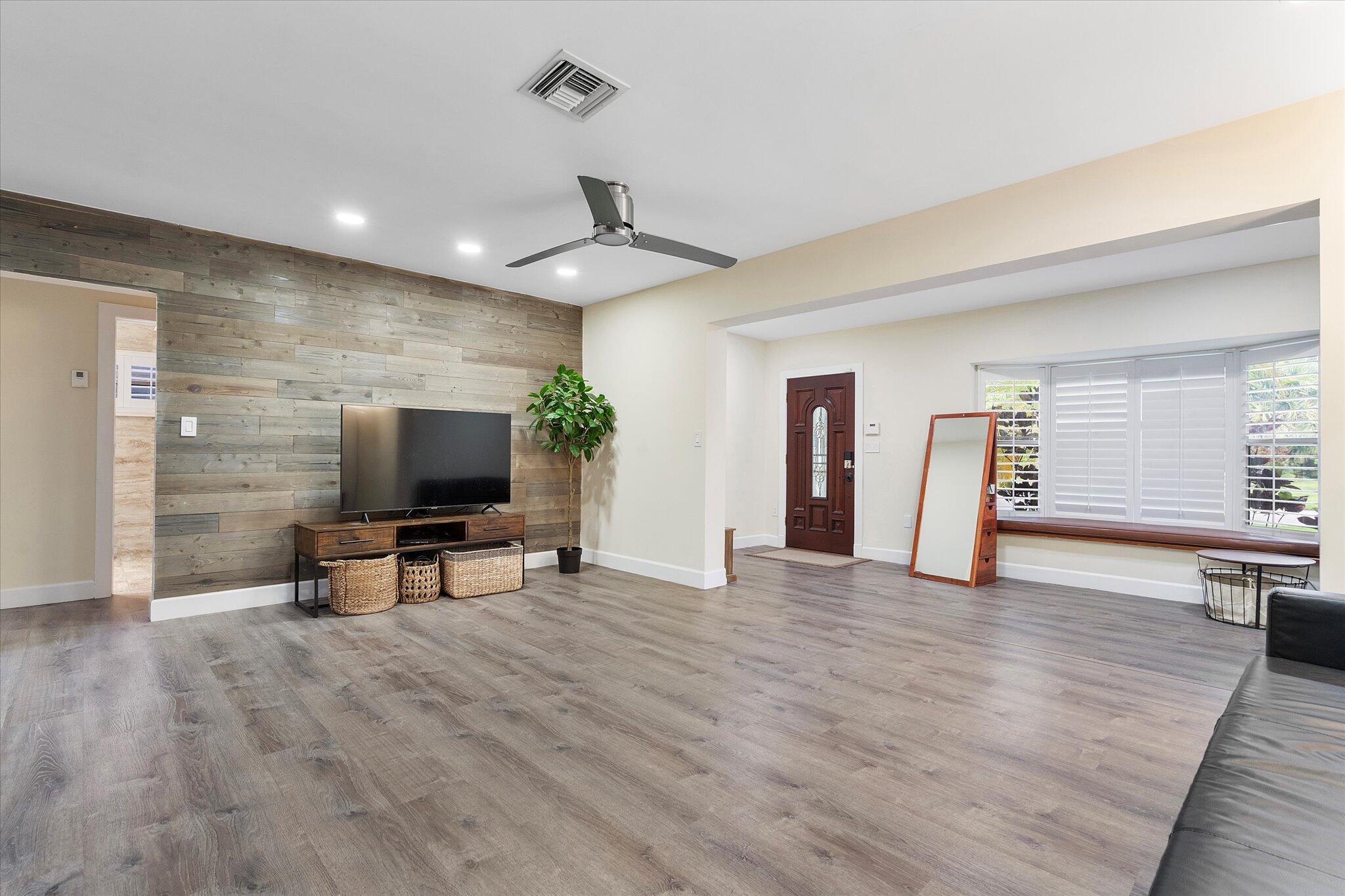 This beautiful home comes with a rare opportunity -- AN ASSUMABLE LOAN WITH LOW 3.125%. Just a short walk to downtown Hollywood and the Intracoastal, this beautifully updated home offers great curb appeal, a spacious layout, and flexible living space. Features include luxury vinyl plank flooring, fresh interior paint, and a chef's kitchen with Wolf gas stove, Sub-Zero fridge, large island, and generous storage. Both bathrooms have been fully renovated with high-end finishes -- including glass-enclosed shower, floor-to-ceiling tile, dual vanities, and a stunning freestanding tub in the primary suite. French doors lead to a screened porch. The converted garage serves as a third bedroom, office, or den. The fenced backyard features new turf, a custom playground, and paver driveway.