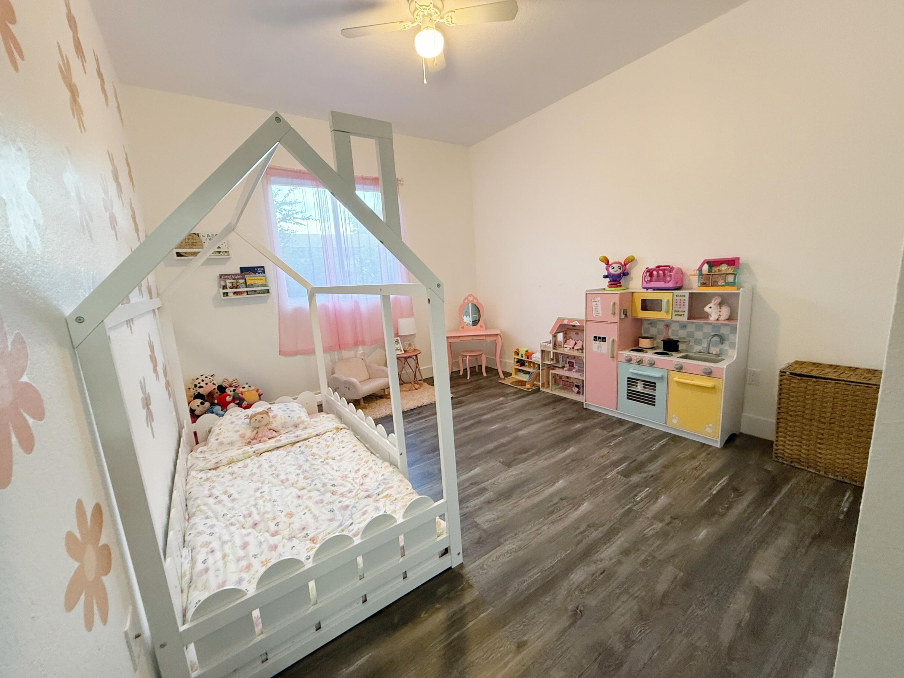 Discover this stunning 3-bedroom, 2-bath home perfectly blending comfort, style, and functionality! Featuring soaring 10-ft ceilings with crown molding, elegant vinyl and tile flooring, and spacious living and family rooms. The modern kitchen shines with quartz countertops, stainless steel appliances, and a smart refrigerator. The primary suite offers a walk-in closet, dual sinks, and sliding impact glass doors leading to a covered patio, perfect for relaxing. Enjoy peace of mind with impact windows and doors, security cameras, and a two-car garage with remote and keypad entry. Complete with front and rear porches and an automatic sprinkler system, this home is truly move-in ready!