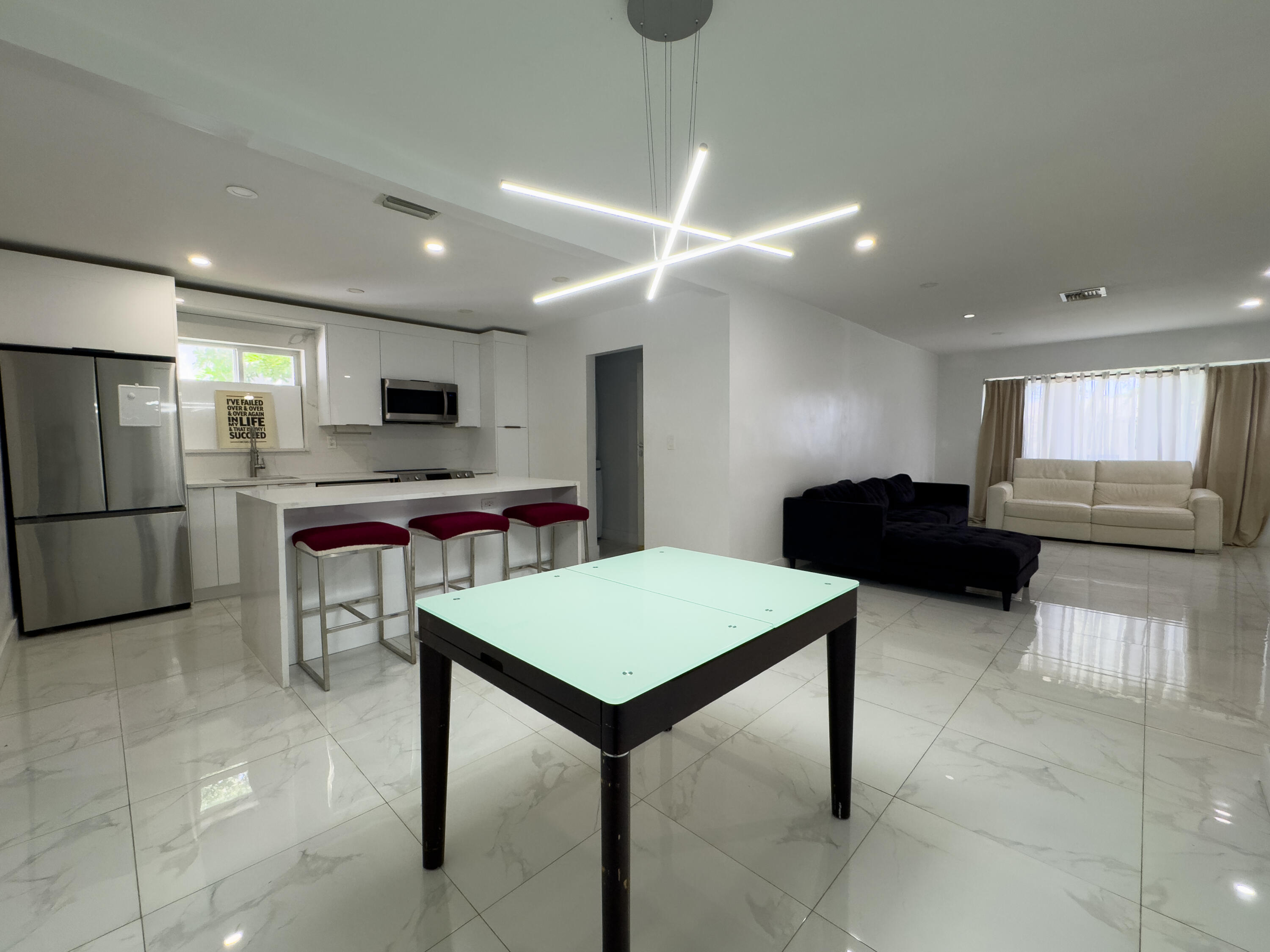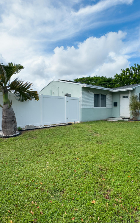 Upgraded Pool Home with Solar Panels & New Roof (09/2025)! Modern concrete block home featuring high-impact windows, remodeled kitchen, and updated bathrooms with step-in showers. Freshly painted inside and out with new electrical systems. Brand new roof and solar panels offer energy efficiency and lower utility costs. Oversized lot with space for trucks, trailers, boats, or RVs. Fenced backyard perfect for entertaining includes a sparkling pool and new gazebo. One bedroom serves as an efficiency suite with a private entrance and a kitchenette, ideal for guests, in-laws, or extra income. Minutes to beaches, shopping, and highways!