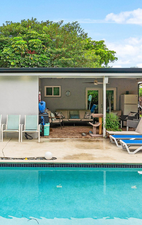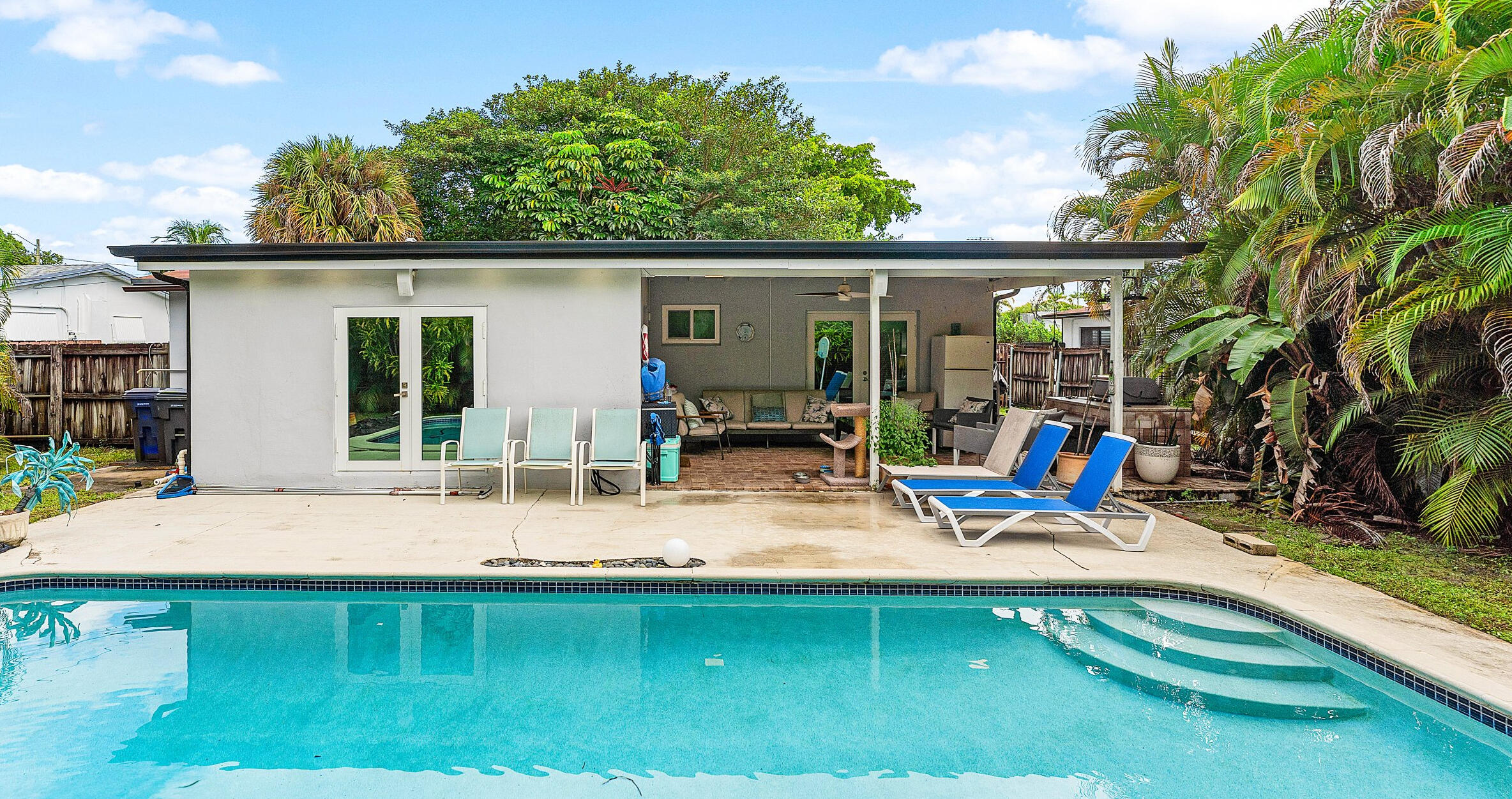 Contemporary 3/2 with pool in desirable Hollywood Hills. No HOA Motivated Seller. Updated kitchen with stainless, Island, ample storage, barn door access to large laundry room, French Doors lead out to the pool and porch with pavers and outdoor kitchen with built in grill. A/C smart thermostat ,impact windows, custom frosted doors and levers throughout, vinyl flooring throughout. Motion detector lighting. I1 car garage with circular driveway. Roof and A/C 2016.Minutes from I95 and Hollywood Beach.Large lot approx. 9380 sq ft.TV and Speakers convey.