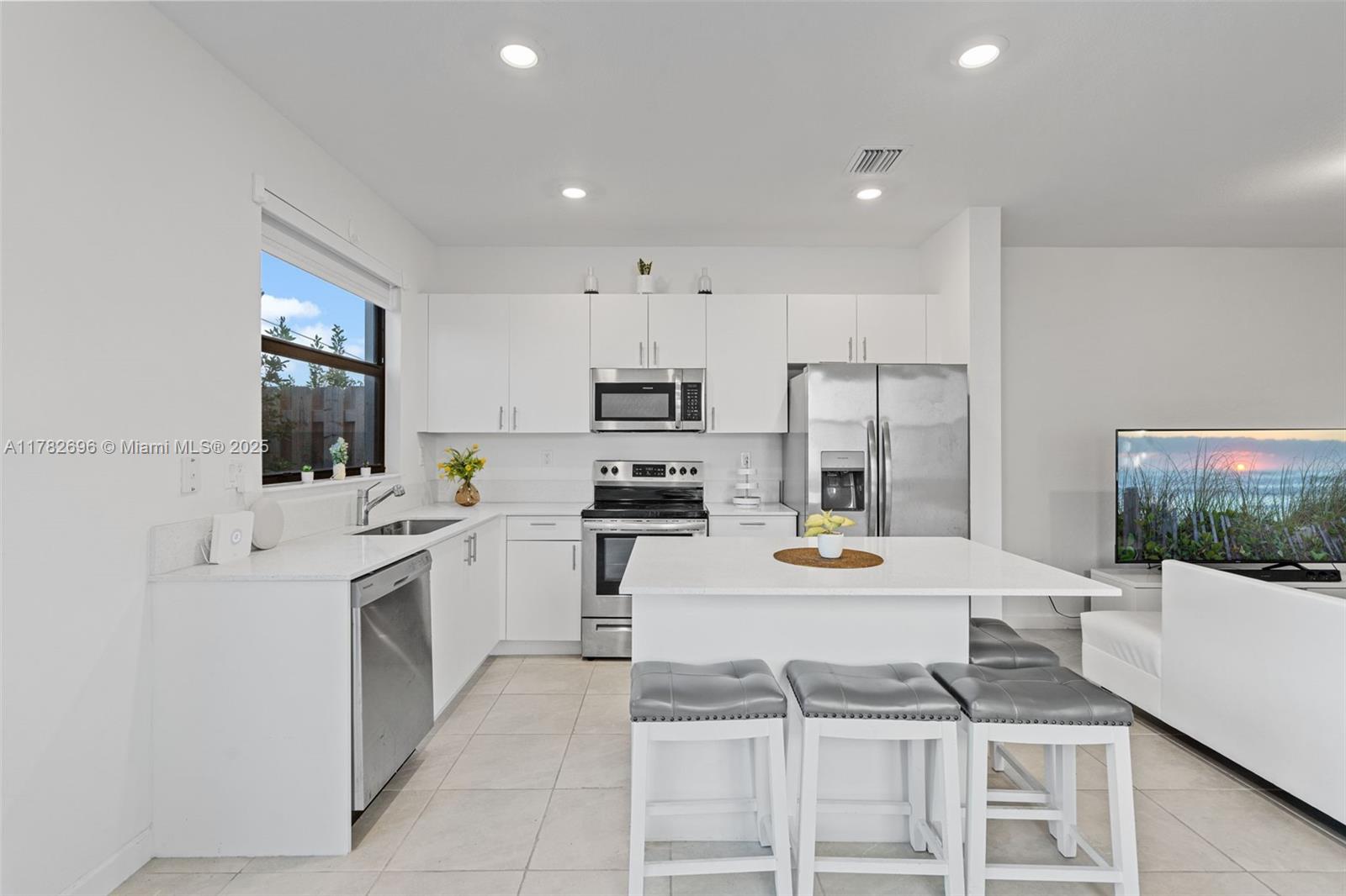 Delight yourself in this -less than- 2y old corner townhouse flooded with natural light! It features open floorplan, kitchen island w Quartz counter tops, a master downstairs and 2 bedrooms upstairs (one of them has its own bath & walk-in closet!). Besides being like new, it just got installed Zebra blinds in all high impact windows and let me point out the real plus: the safety and technology of a new property without having to wait a year or more for the developer! Large backyard Less than 2-year-old means newer equipment, new electricity and new plumbing! Only 2 minutes from US1 and less than 5 minutes from the Turnpike. Easy to show! Easy to finance (lot and block), FHA & 5%CONV approved!)... Best location and most value!