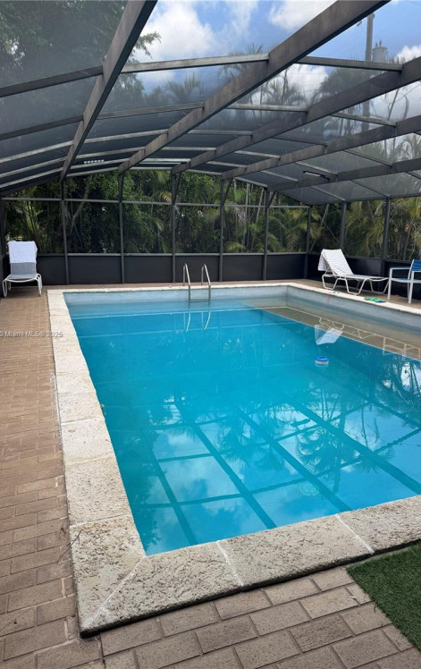Spacious single family home with three bedrooms (oversized master suite), two bathrooms and a 1-car garage plus driveway space and an enormous screened pool. NO HOA. New roof installed in March 2025. Handicap ready. Kitchen Granite countertops. Large family/living room. Huge backyard with mango tree and a Shed for extra storage. Walking distance from shopping, great restaurants, doctors and everything you need.
