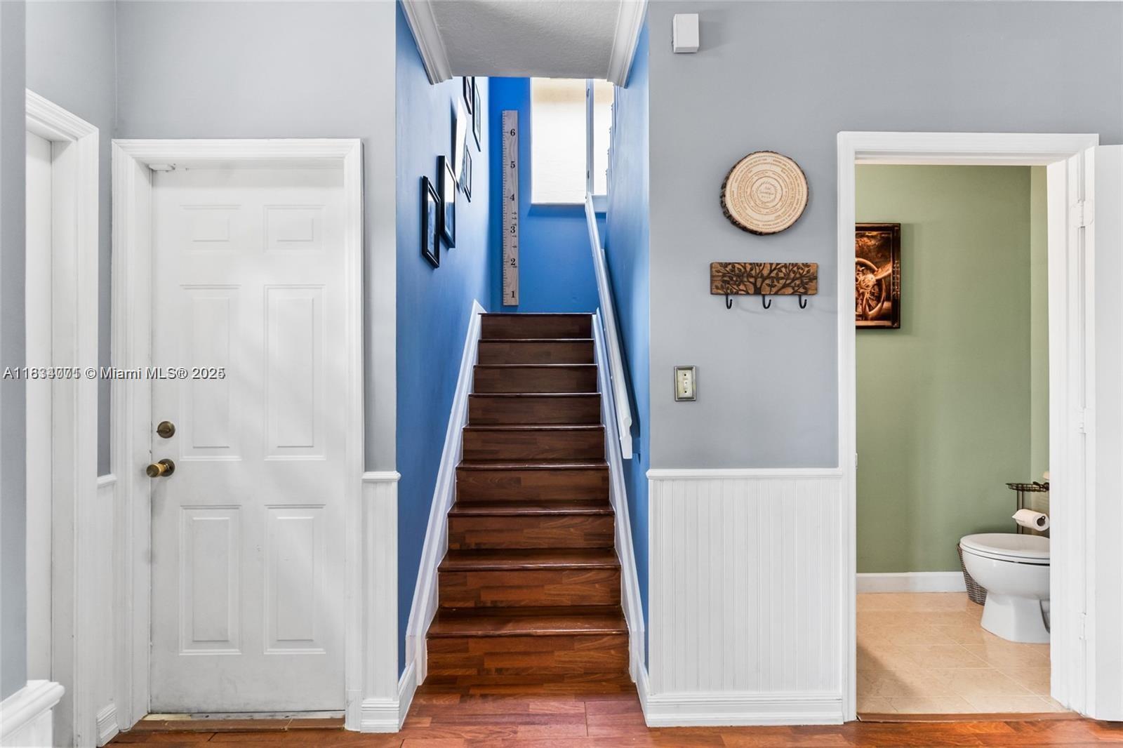 Beautiful 3-bedroom, 2.5-bath single family home with 1-car garage in the gated Waterstone community. This two-story home features French doors, screened patio with lakeview, laminate flooring throughout, and a real wood staircase. The kitchen is updated with stainless steel appliances, modern fixtures, backsplash, and custom shelving. New AC installed in 2021. The primary bedroom offers a lake view and large walk-in closet. Enjoy resort-style amenities including a clubhouse, gym, 2 pools, kiddie pool, and park. Low HOA and move-in ready. Conveniently located near US-1, the Turnpike, Publix, Walmart, Starbucks, schools, and just minutes from Homestead Air Force Base. Florida living at its best!