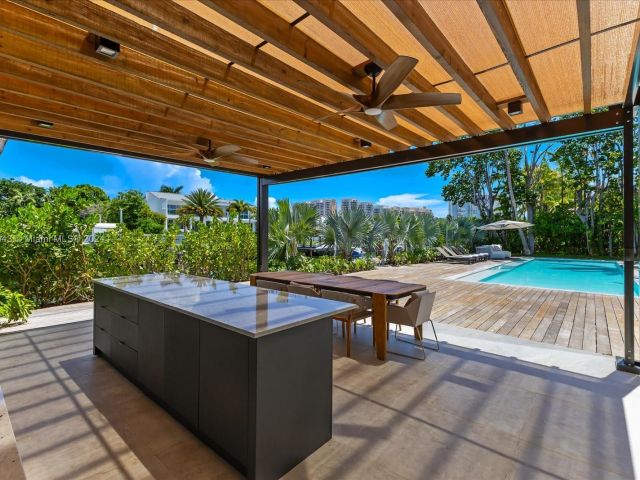 Experience luxury living at its finest in this stunning Key Biscayne waterfront home!. Recently renovated to the highest standard, no expense was spared in creating this masterpiece with new bedrooms, bathrooms, flooring, plumbing, electrical, outdoor deck, kitchen, and appliances. Enjoy the spacious, contemporary design with a private oasis and breathtaking canal views. Natural light streams through soaring ceilings and floor-to-ceiling sliding glass doors, while custom lighting adds a touch of sophistication. The home features 4 generous en-suite bedrooms, a gym (convertible to a 5th bedroom), a gorgeous home theater, powder room, cabana bath, and an outdoor summer kitchen with covered lounge space and boat lift. Additional conveniences include 2 service bedrooms!