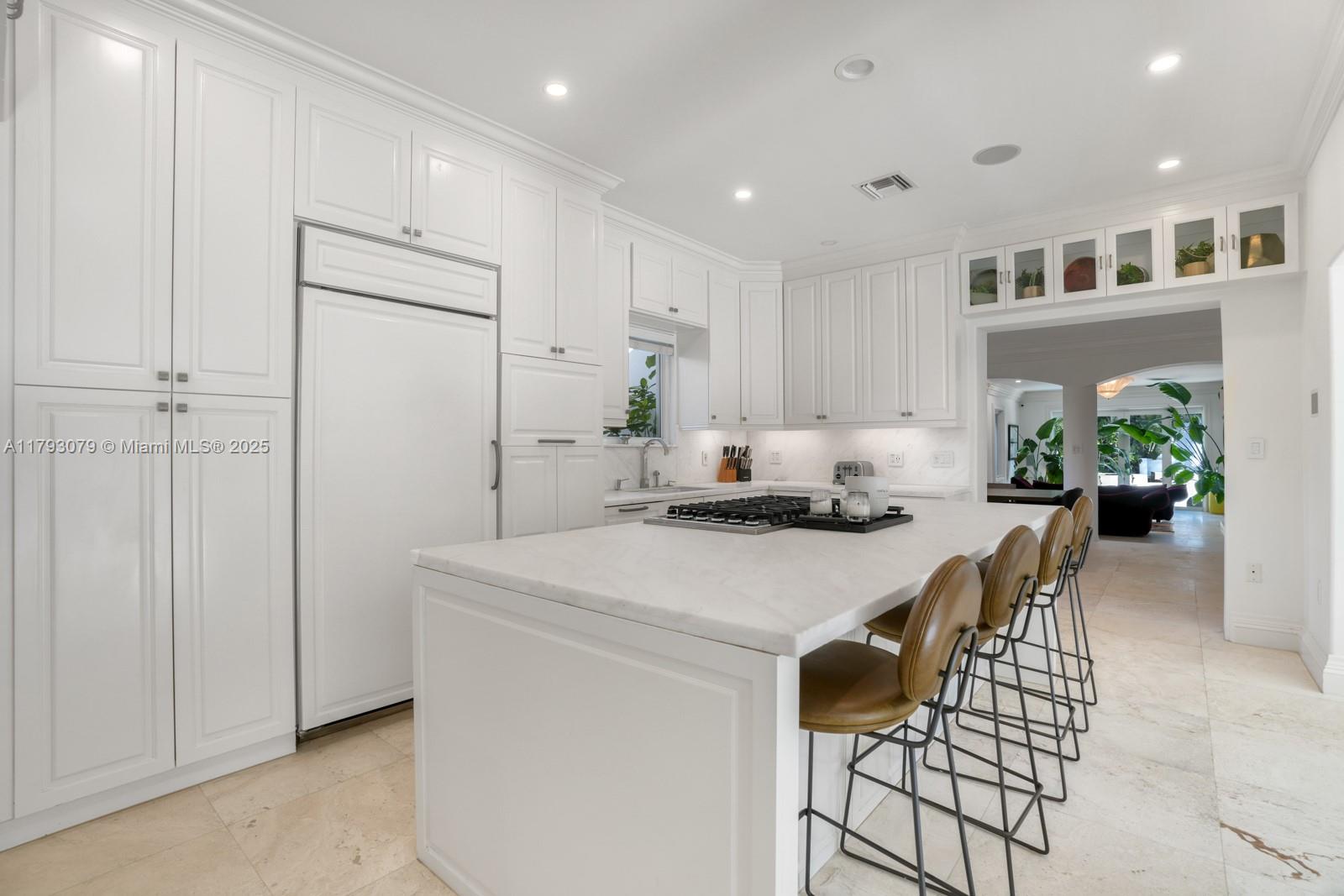 Ultra-Private estate situated on an oversized 15,725 SF lot in the heart of Miami Beach. Exquisitely renovated entertainer's dream home featuring 3 bedrooms/2 baths upstairs and 1 bed/2.5 bath down, plus spectacular library/convertible bedroom and sun lounge. South facing, sun-flooded pool with brand new oversized coral stone Jacuzzi, cold plunge, sauna and steam shower. Impeccably landscaped grounds with mature specimen trees and flowers. White marble custom kitchen with Viking and Sub-Zero appliances. Property is completely walled and gated with security system and cameras. Just steps to the ocean, top resorts, Lincoln Road and brand new 19 acre Bayshore Park.