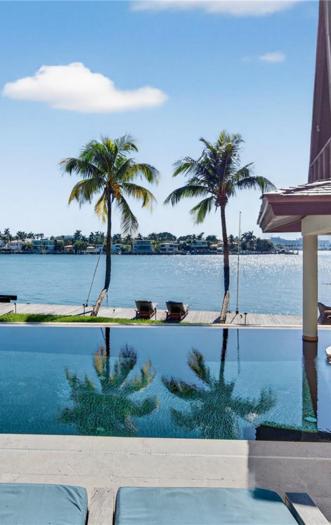 Nestled on the prestigious Venetian Islands, this Balinese-inspired sanctuary offers highly coveted SW-facing sunset views over downtown Miami's skyline with over 100 feet of water frontage on pie-shaped 13,000 sqft lot. Designed for relaxation and entertaining, the property features over 8,000 sqft of indoor/outdoor living. Features include outdoor kitchen, dining, oversized infinity pool with waterfall feature and hot tub, crowned by a unique over-water zen cabana. The home features an expansive primary suite plus 5 additional bedrooms, each with its own bathroom. With a cozy movie room, sauna and wellness-focused amenities, this distinctive retreat combines warm elegance with breathtaking views in one of Miami Beach's most desired locations.