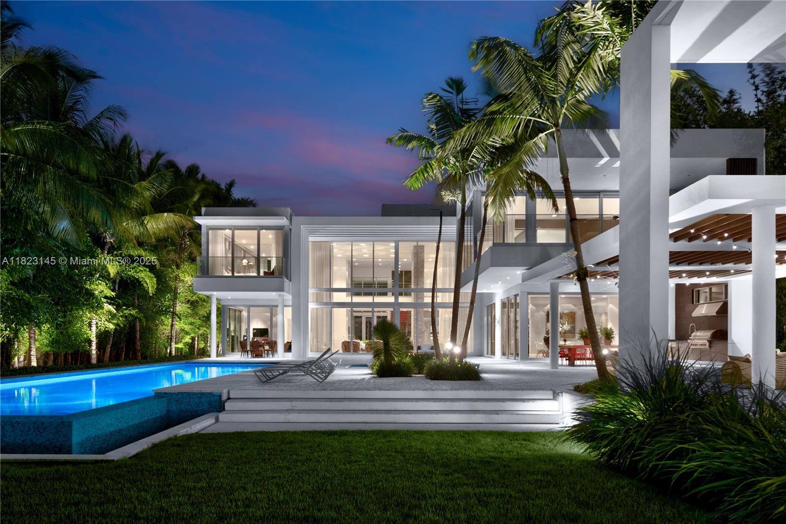In a league of its own, this modern estate redefines luxury living on guard gated Palm Island. Nestled on an expansive 32k SFlot, enjoy 9 beds 8/1 baths perfectly set on 13,144 SF. The chef’s kitchen is an epicurean delight, featuring top-of-the-line appliances, a walk-in refrigerator, & stunning water views. The expansive primary suite offers an oversized marble bathroom, generous closets, & private balcony overlooking the bay. Entertaining is elevated to an art form with multiple outdoor spaces seamlessly woven into the estate’s design, showcasing breathtaking skyline views. Highlights include a wine cellar, movie theater, gym, dedicated staff quarters with dual rooms, a pet room, & an elevator. A private dock, 100 ft of water frontage, & direct ocean access complete this masterpiece.