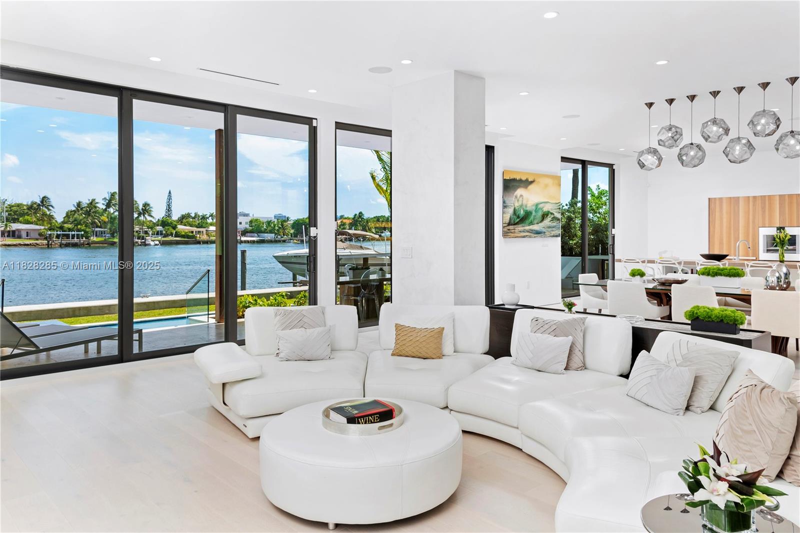 Villa Nova is a stunning modern design located within gated Biscayne Point. Newly constructed to capture breathtaking sunrise and sunset views, perfect for entertaining. Premium finishes, the home features 6 bedrooms and 7 bathrooms across an 11,250SF lot with 75ft of prime waterfront. Architectural elegance is expressed through limestone cladding, aluminum louvers, and white oak flooring. The exterior is finished in travertine, while the garage is wrapped in rich ipe wood. A Boffi XILA walnut kitchen and limestone-clad Boffi bathrooms enhance the luxury. Venetian plaster walls, soaring ceilings, and a floating concrete staircase create an atmosphere of refined architectural sophistication. Enjoy a heated saltwater pool and spa, along with fully integrated smart home technology.