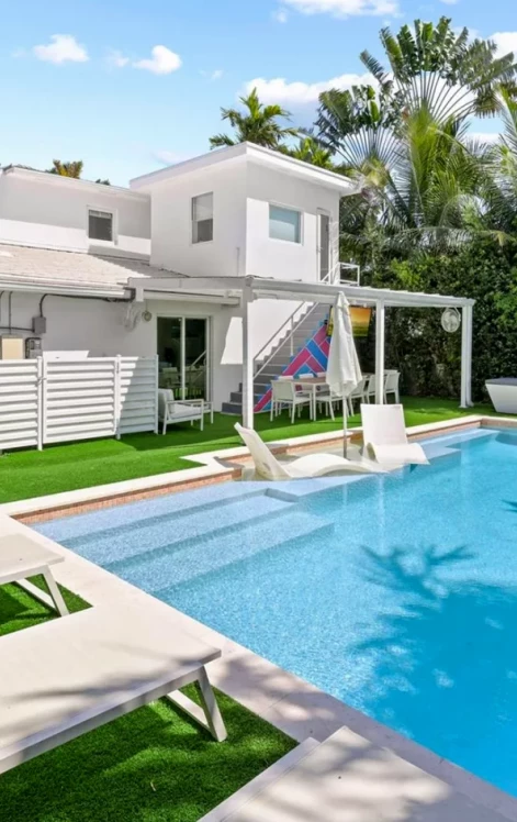 Outdoors, enjoy an expansive pool and yard area complemented by a private basketball court. An additional office or flex space, accessible via exterior stairs, provides a versatile setting for a home office or gym. Set on a picturesque tree lined street just minutes from 41st Street shopping, the beach, and with easy access to the Design District, Downtown Miami, and Miami International Airport, this home offers a rare combination of charm, space, and location.