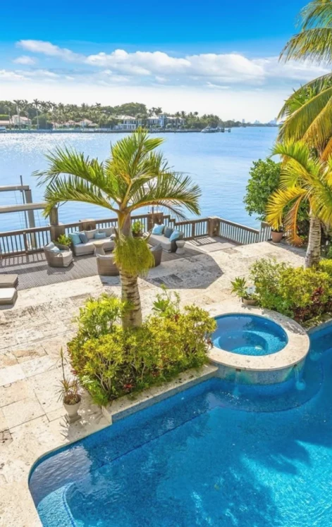 Welcome to this spectacular 5 bedroom, 5 1/2 bathroom private tropical oasis on over 65 feet of open Bay with a 45 foot dock. Live your best indoor/outdoor luxury lifestyle with French doors opening up to beautiful terraces throughout this renovated Mediterranean estate. This incredible home is perfect for entertaining with a gorgeous family room and wet bar overlooking the Bay as well as an incredible eat in chef's kitchen with 60" Wolf Duel Stove with French Top, 45" Subzero refrigerator/freezer, 36" Hoshizaki ice maker, Subzero wine refrigerator, Wolf warming drawer and stunning marble island. The Elan Smart Home is surrounded by 8 foot privacy wall, Hikvision cameras as well as mature lush foliage that creates a secluded dream home. Come see this one of a kind waterfront property. You do not want to miss it!