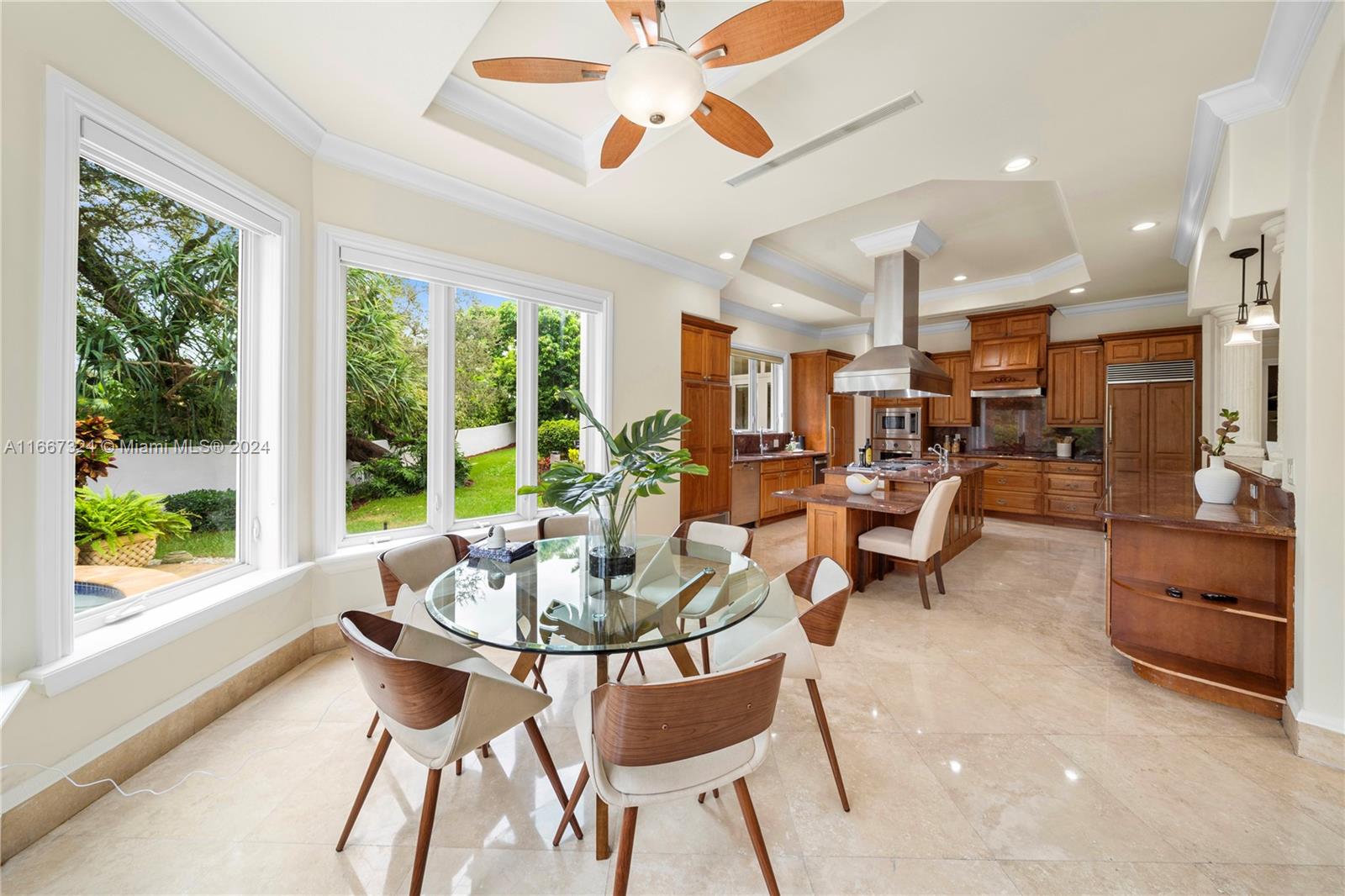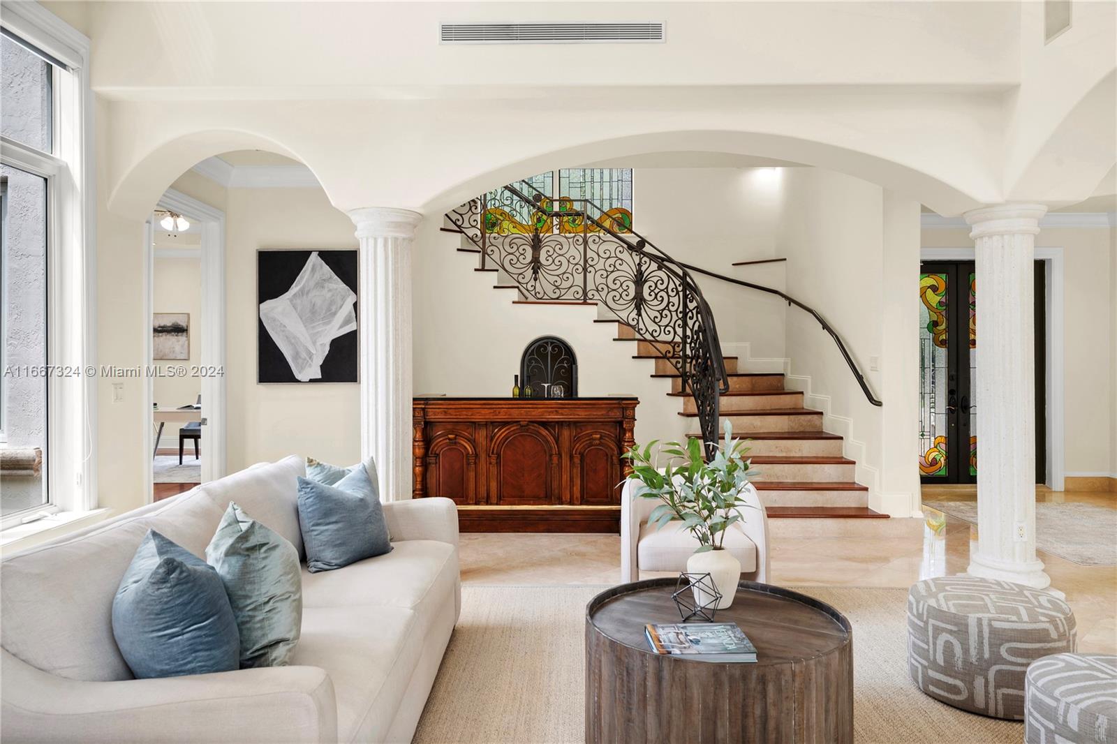 Gracious, spacious, and fabulously located in Schenley Park, this 2008-built 6 bedroom, 7.5 bathroom, 6,184 square foot home makes hosting company a breeze! It has a chef’s kitchen with high-end appliances, large open family room that steps out to the covered patio, newly-resurfaced pool, and exterior pool bath, formal dining room, and formal living room with soaring ceilings. The ultra-functional floorplan has 4 bedrooms, including the primary suite with 2 walk-in closets and spa-like bathroom upstairs, plus a guest room/office and staff quarters on the first floor. The home features marble and wood floors, impact glass, whole-house generator, 2 car garage, and laundry room, plus a walled and gated 14,342 square foot lot all right in the heart of the action!