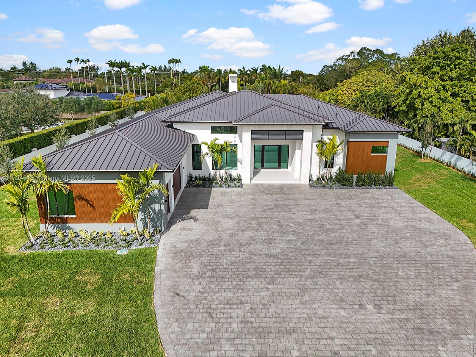 Completed in 2025, this newly built custom estate sits on over an acre, offering 7,471 sqft of refined modern living. Thoughtfully designed for today’s families, it features soaring 17-ft ceilings, fireplace, gourmet kitchen, maid’s quarters & a versatile playroom or office. The open and light-filled spaces flow effortlessly to the outdoors. Perfect for entertaining, the expansive terrace, summer kitchen, and resort-style pool with jacuzzi create a seamless setting for gatherings and relaxation. The split layout provides exceptional comfort and privacy, while the 3-car garage and large driveway offer ample space for vehicles, boats, or an RV. Built with timeless elegance and attention to detail, this home delivers the perfect balance of luxury, functionality, and serenity.