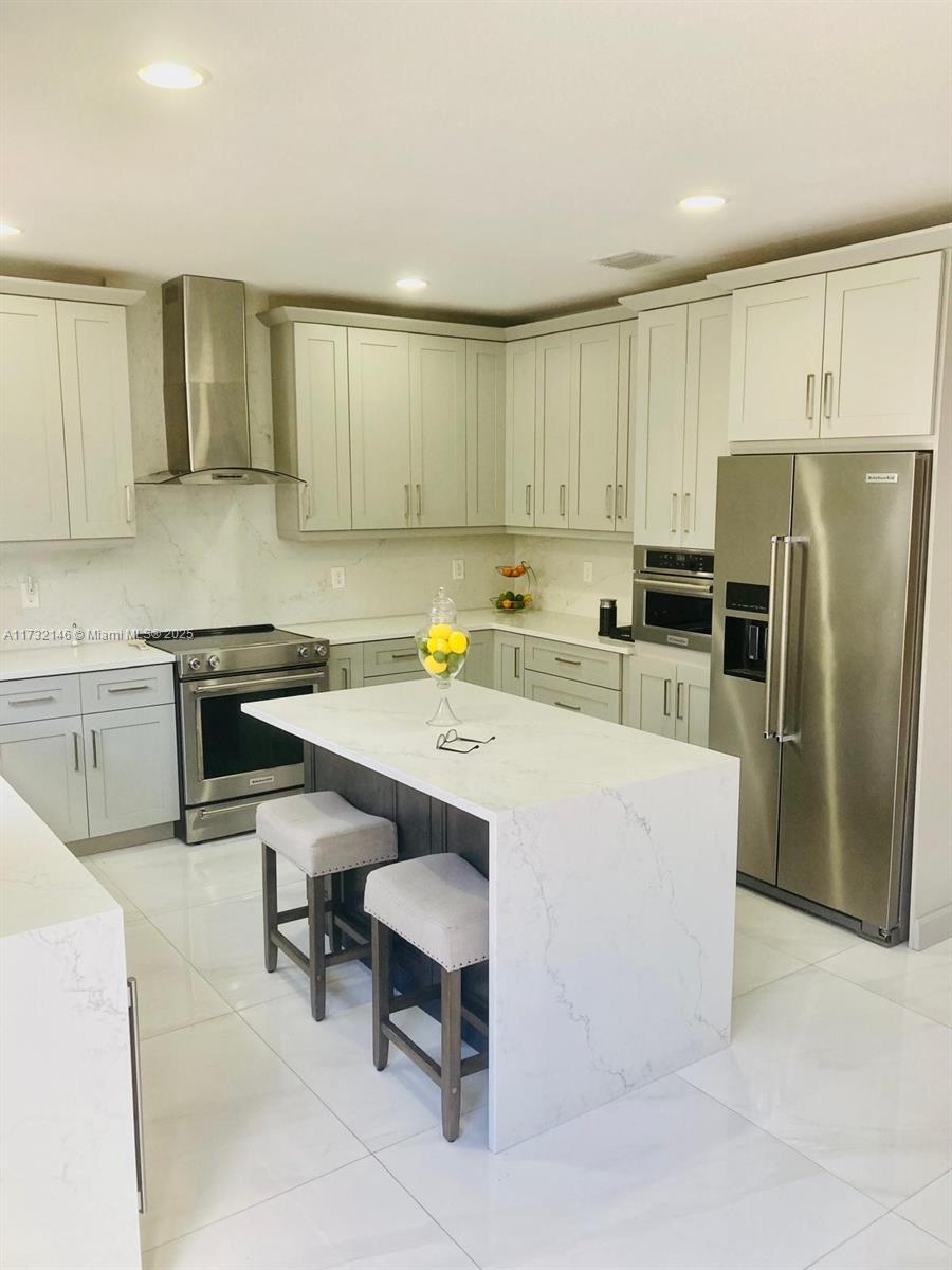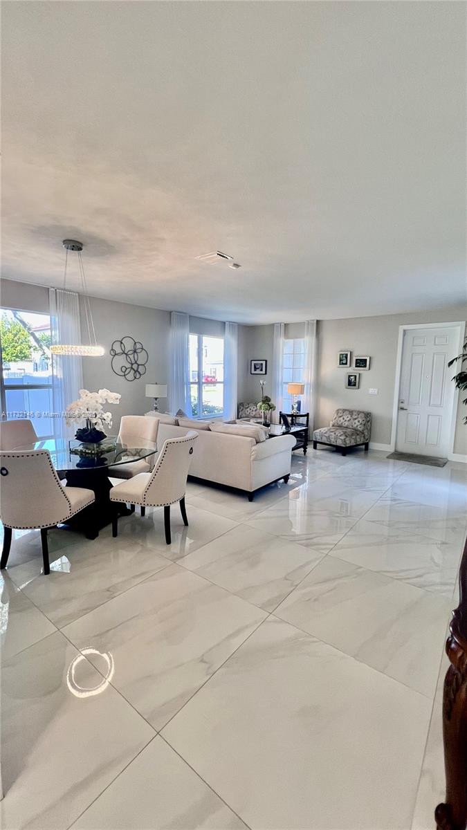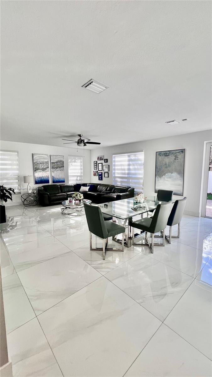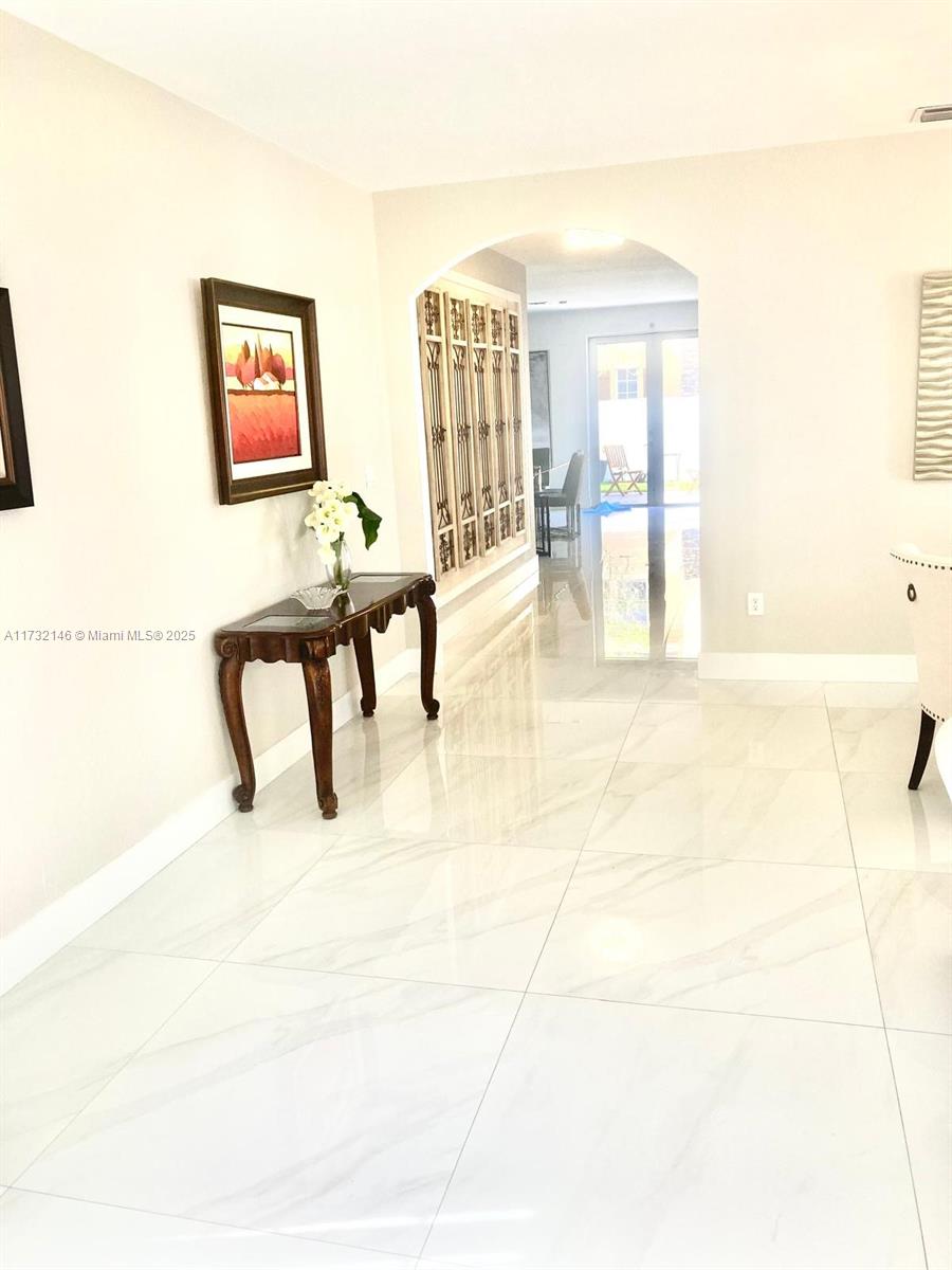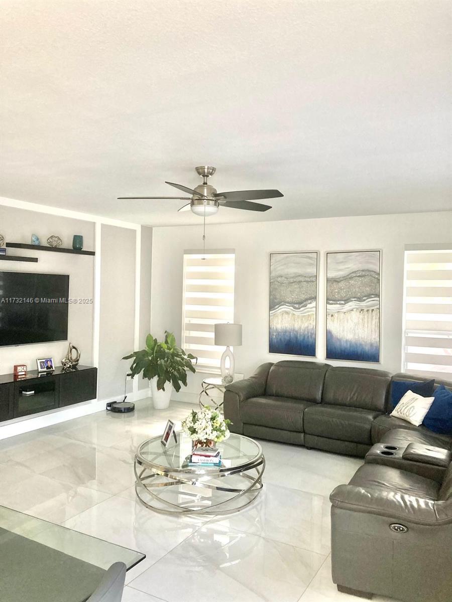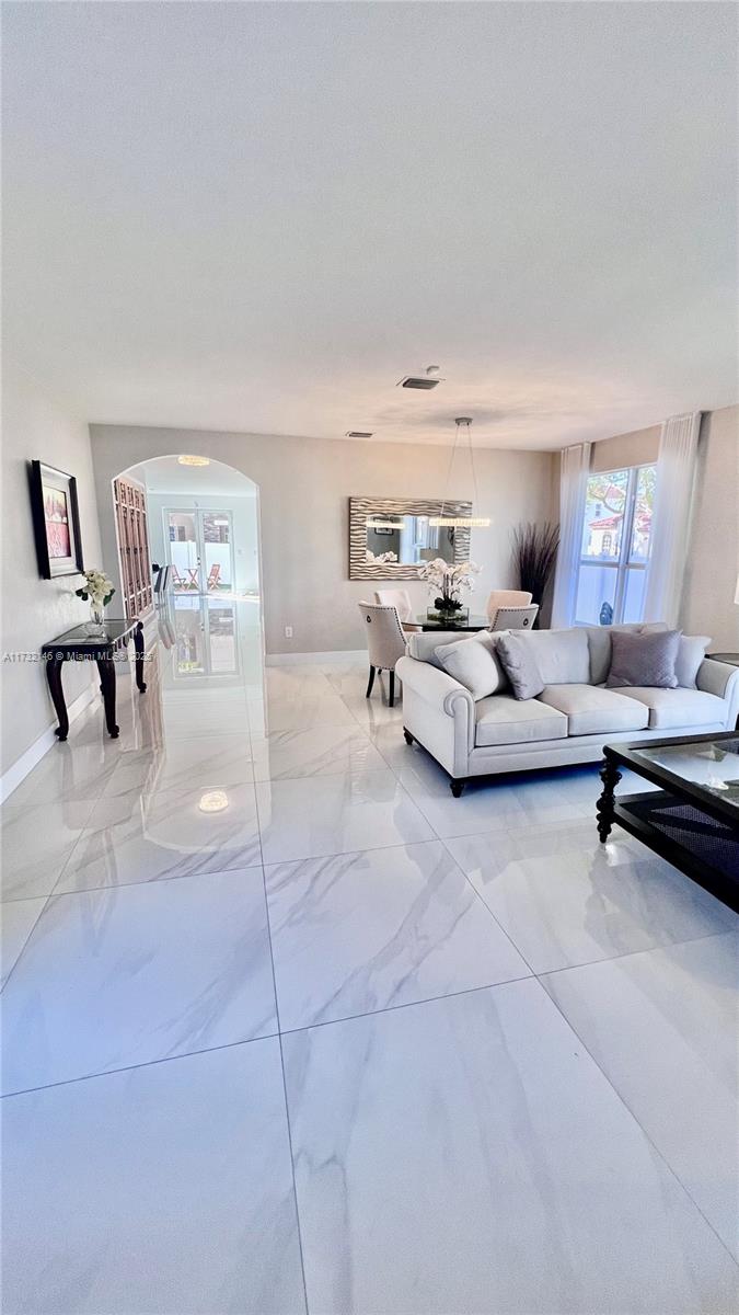 This stunning two-story home in Miami seamlessly blends modern elegance with timeless charm. The home boasts expansive open-concept living areas adorned with luxurious, high-gloss porcelain floors that reflect natural light and create a bright, airy ambiance.