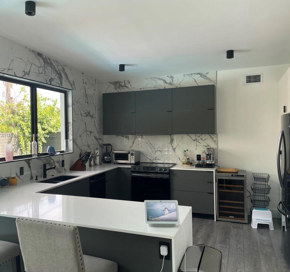 Assumable mortgage with a 3.25% interest rate. Move-in ready, remodeled home with a pool on a quiet SkyLake street. The bright Grand Room features ceiling-height impact French doors overlooking the pool. A gourmet kitchen boasts Italian cabinetry, a marbled stone backsplash, and a peninsula bar. The spacious main suite fits a California King bed and includes a custom walk-in closet. Modern bathrooms feature large tiles, glass doors, sleek showerheads, and LED-lit mirrors. A converted, A/C-cooled garage offers extra space. Recent upgrades include electrical, plumbing, impact windows, luxury vinyl flooring, and solar panels. Please contact for more details.