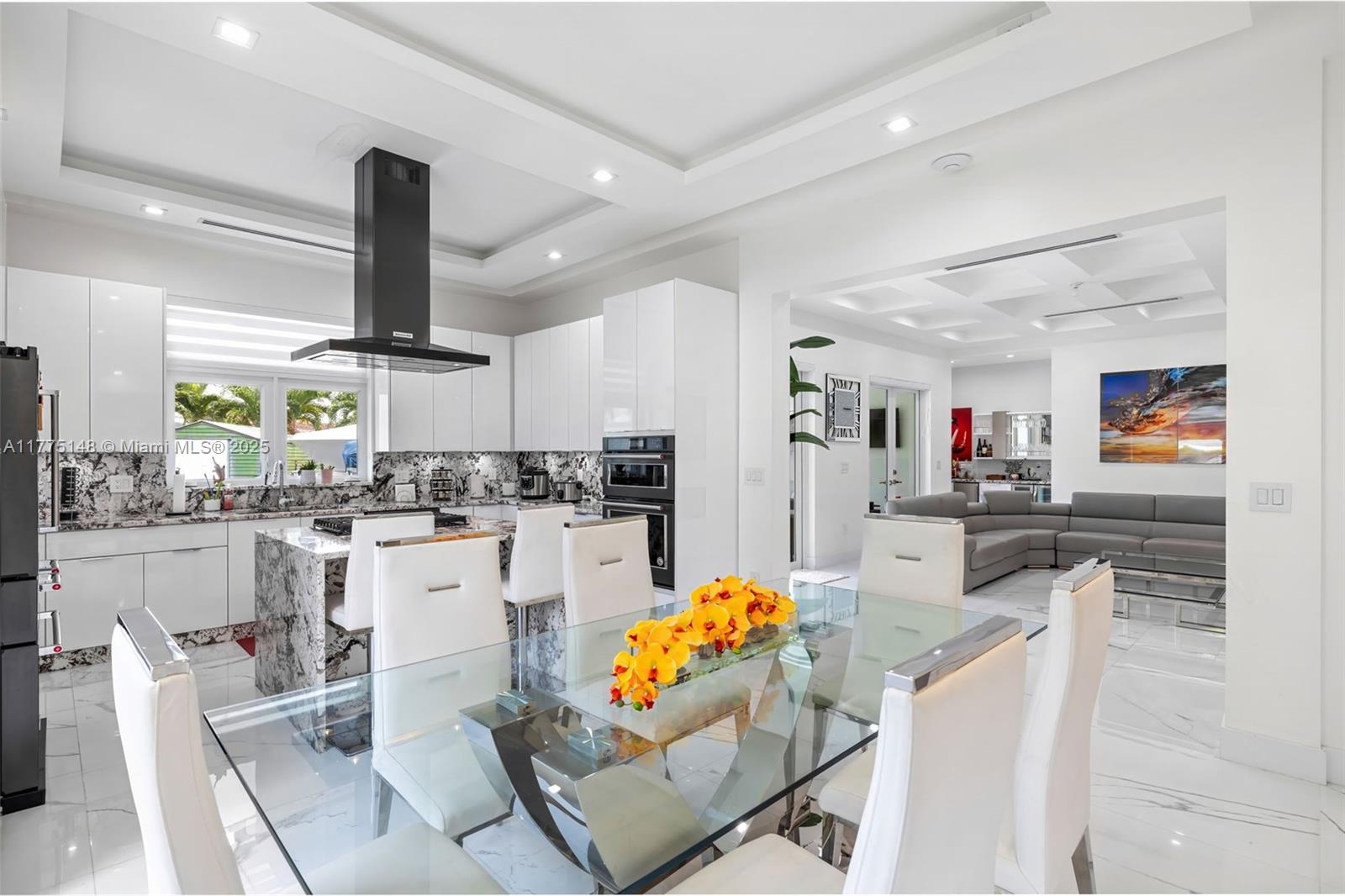 This exceptional property is situated in a coveted neighborhood. On a 24,075 sqft lot, it features 4 bedrooms 4 bathrooms and an extra room that serves as flexible space. Completely remodeled, it boasts 2022 updates to the roof, electric, and plumbing. The interior showcases elegant Spanish porcelain floors and 10.6 ft ceilings, with both indoor and outdoor kitchens adorned with quartzite counters, seamlessly connecting the spaces, and perfect for entertaining. Impact-resistant windows and doors offer security, while LED lighting throughout enhances the home’s bright and vibrant feel. A gas meter powers appliances reducing electricity costs. Additional highlights include two 2020-installed AC units, a security system, and a turbine sprinkler system, ensuring convenience and peace of mind.
