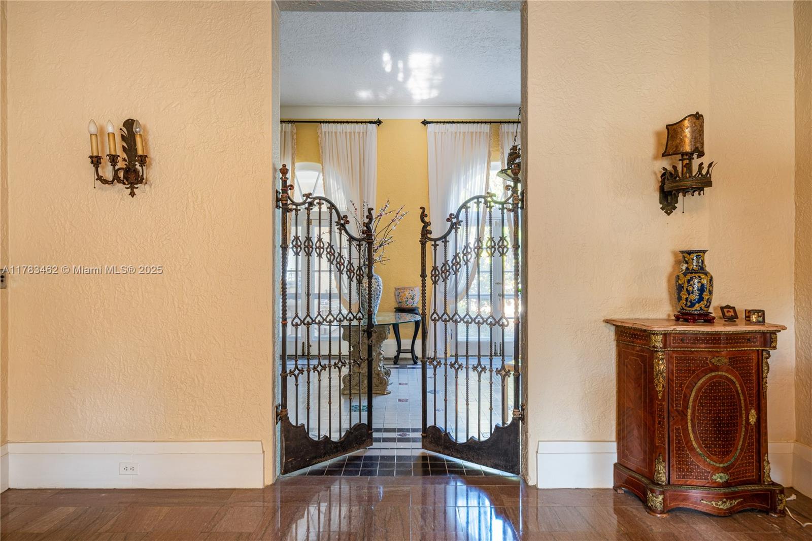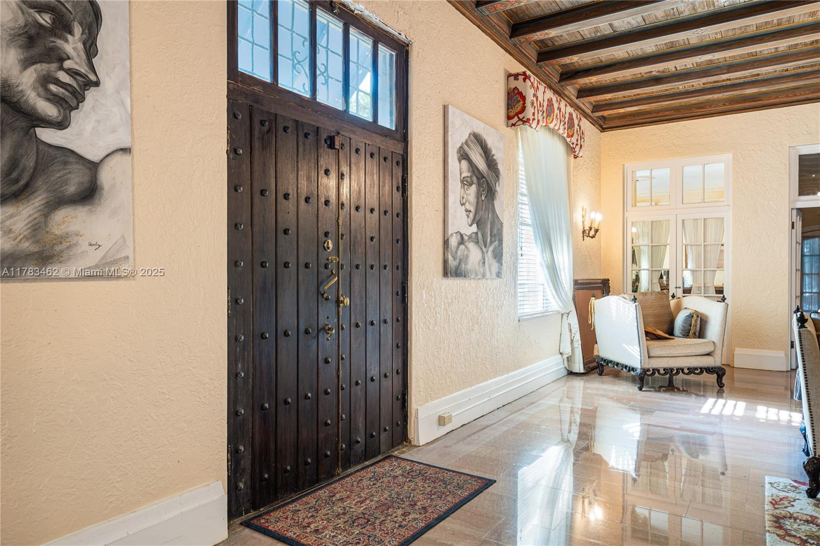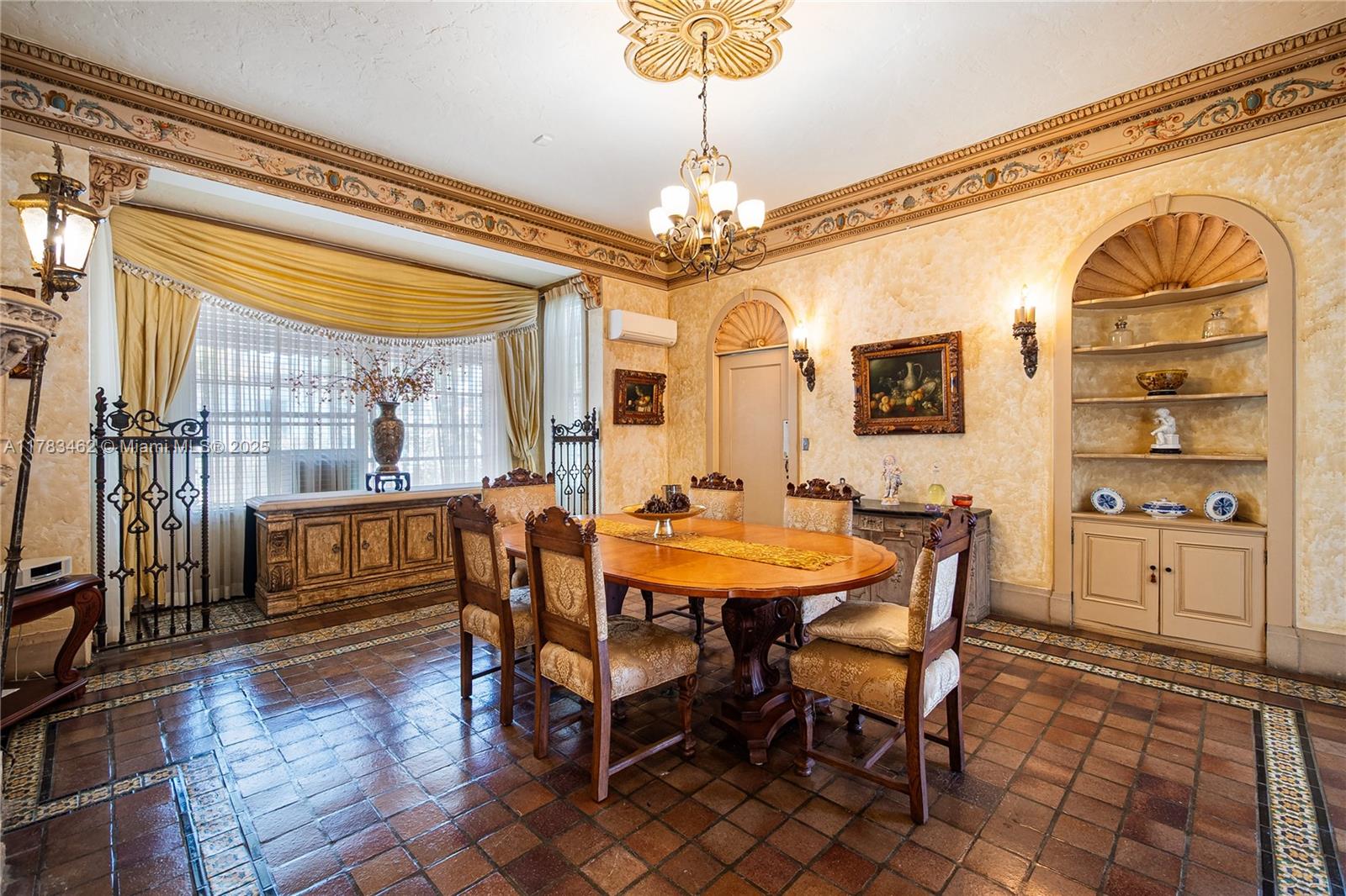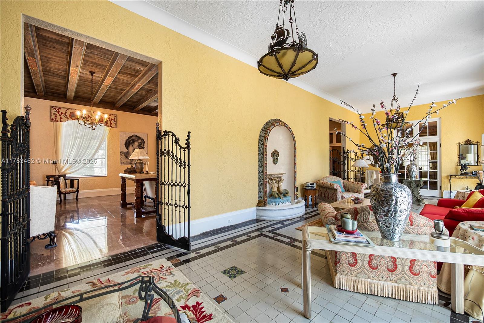 A rare opportunity to own a historic Italian villa designed in 1921 by famed architect August Geiger. Set on a 38,000+ SF lot, this one-of-a-kind home spans over 7,000 SF and was originally commissioned to replicate a grand Pompeiian villa. Surrounded by lush lawns and a large pool area. The elegant single-story layout features soaring 12' ceilings, expansive rooms, and impeccably preserved original details. The iconic 16-point Star of Macedonia welcomes you inside, where you’ll find 4 spacious bedrooms, an oversized primary suite, a dramatic great room, formal dining and a large adjoined garden room/loggia salon. A generous kitchen flows into a separate secondary kitchen/prep area, seamlessly connected to private staff quarters. A refined composition of history and architectural heritage.