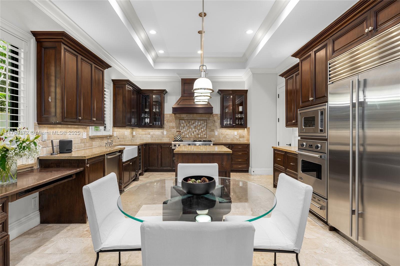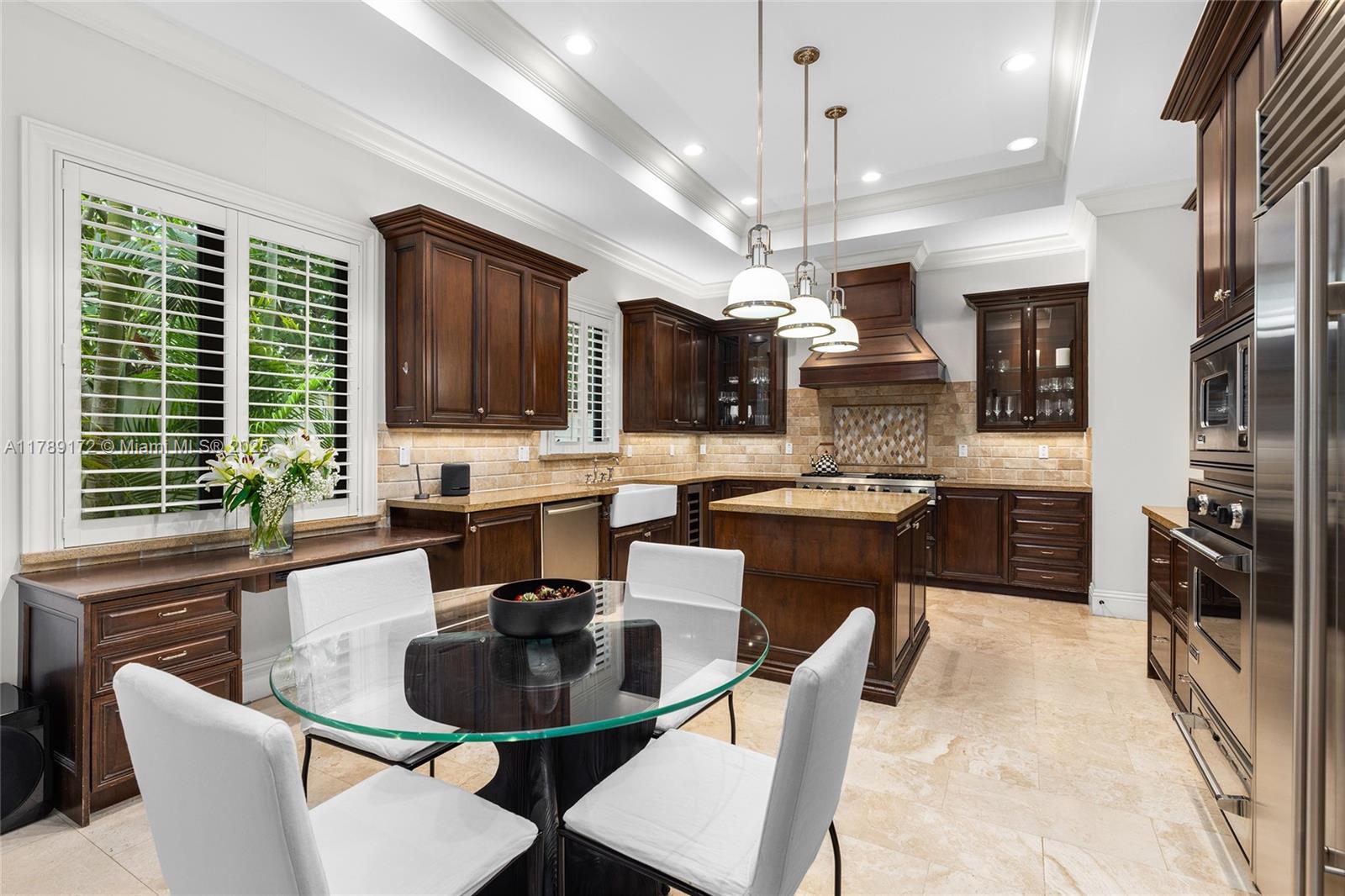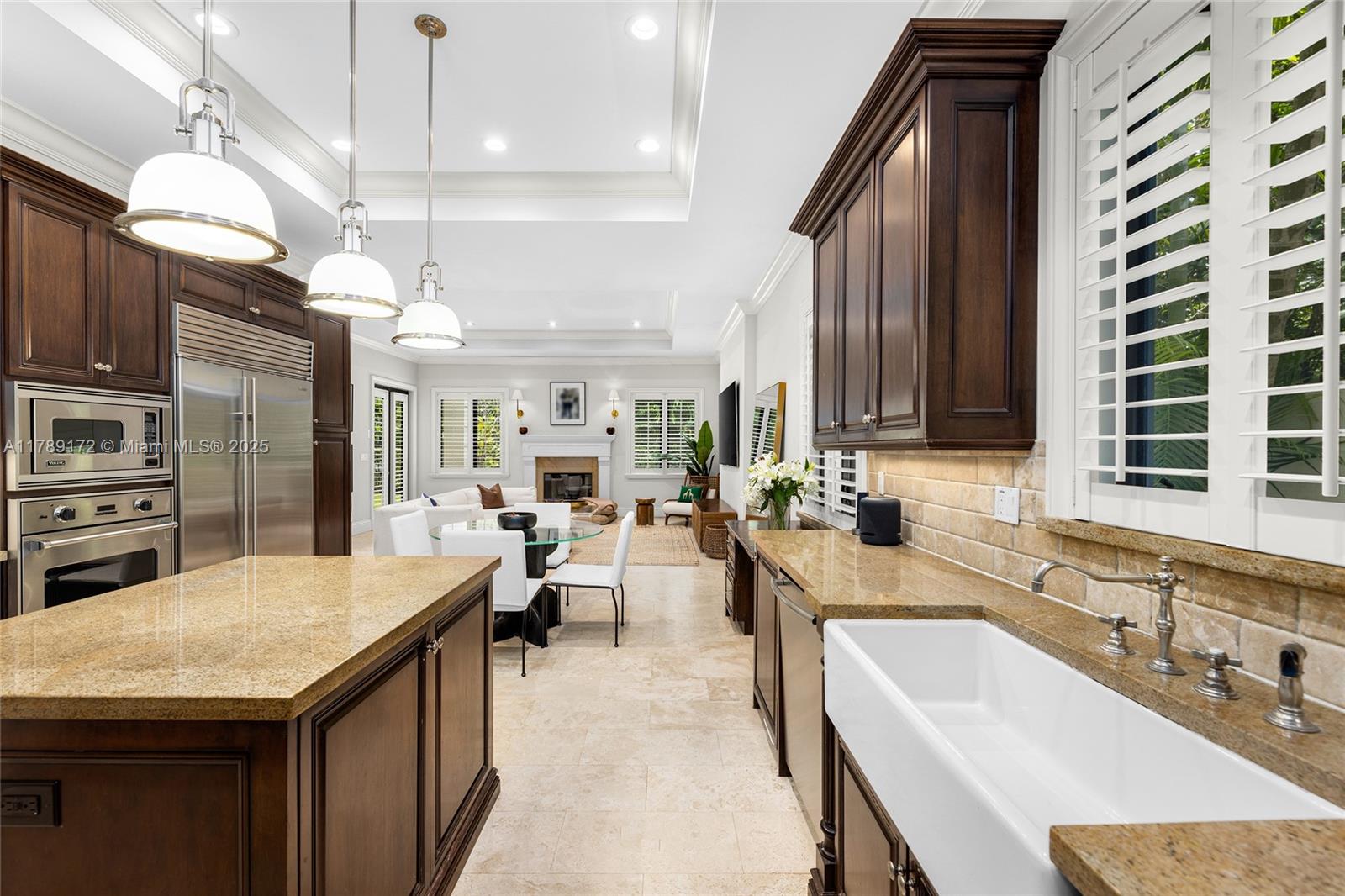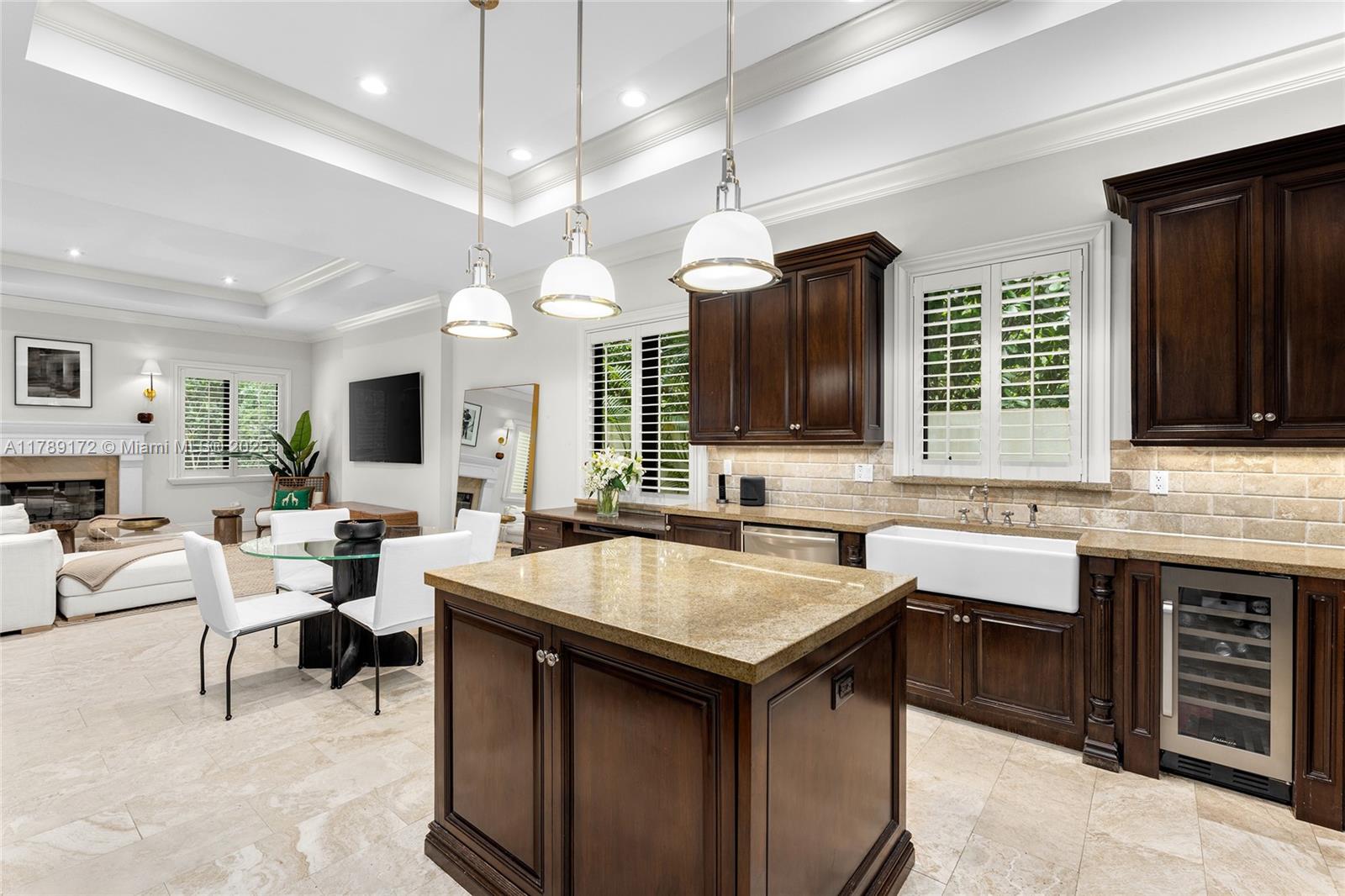 Located in a quiet, tree-lined neighborhood in north Coconut Grove, this elegant 2-story contemporary 5BR/5.5BA home sits on a gated, lushly landscaped 7,500SF lot. Home features 5,695 total SF, marble & rich hardwood floors, soaring ceilings, Sonos sound system & refined finishes. Ground floor offers a separate guest suite, large living & family rooms, formal dining room opens to courtyard w/fountain. Chef’s kitchen is equipped w/top-tier Viking & Sub-Zero appliances, granite countertops & breakfast area. Upstairs, a luxurious principal suite features dual walk-in closets, a spa-style bath & a private terrace overlooking the pool. The private backyard retreat boasts a pool, a covered terrace & lounge areas. Prime location-minutes to parks, marinas, shops/restaurants & top-rated schools.