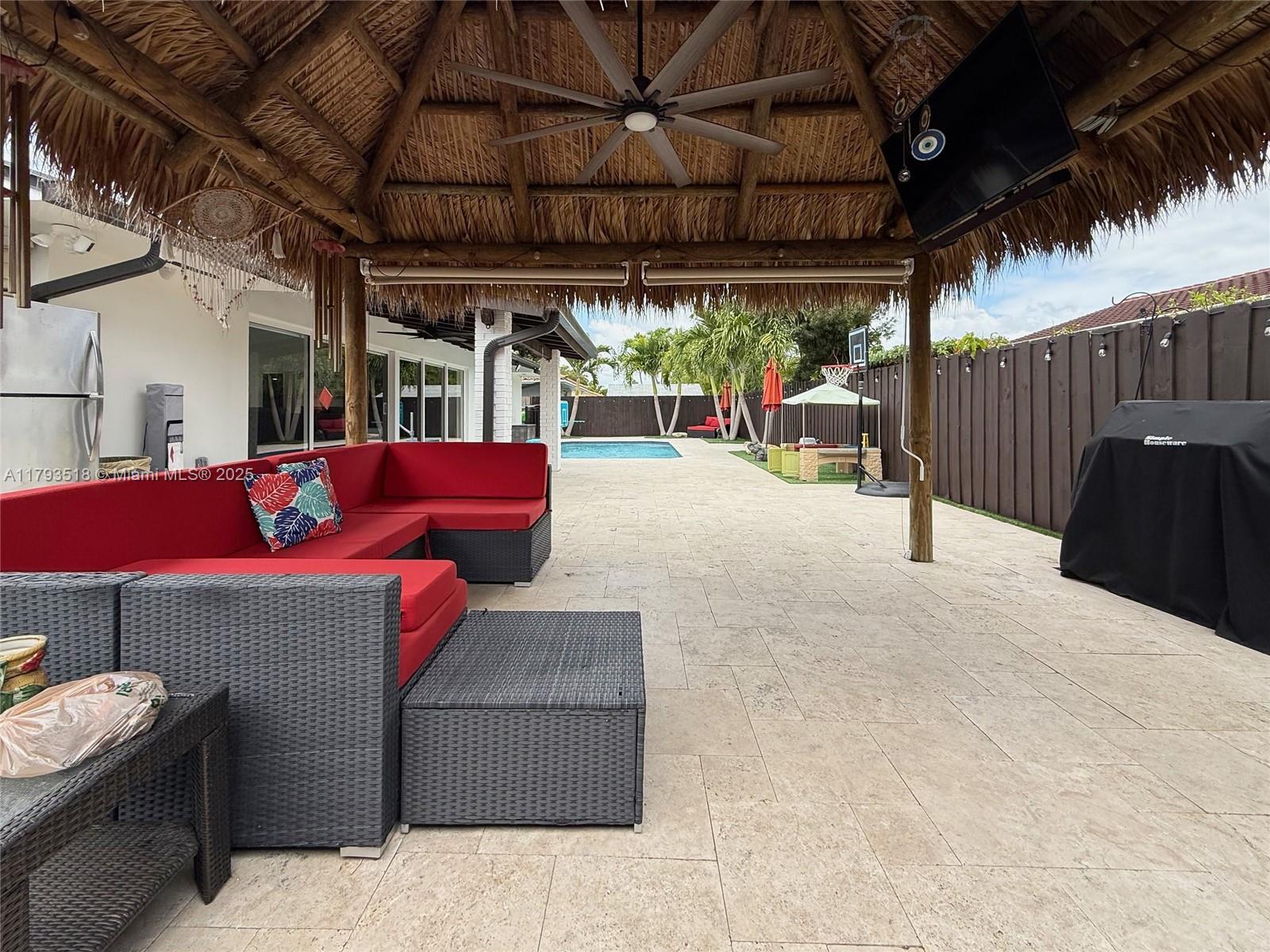 Step into modern luxury in this fully updated 4-bedroom, 3-bathroom Westchester gem, perfectly located near great schools and loaded with premium features. From the moment you arrive, the metal roof, impact windows and doors (plus shutters), and striking curb appeal set the tone for what's inside. The custom kitchen is a showstopper, boasting a 12-foot quartz island, high-end finishes, and open flow perfect for entertaining. Enjoy the heated pool and lounge in the stylish, chiqueee hut. Perfect for relaxing or hosting friends. There’s plenty of room for your boat, RV, or more. It has an EV charger. This move-in-ready home blends style, function, and resilience, making it a rare find in Westchester. SELLER WILL CONTRIBUTE $10,000 TO BE APPLIED TOWARDS CLOSING COST!