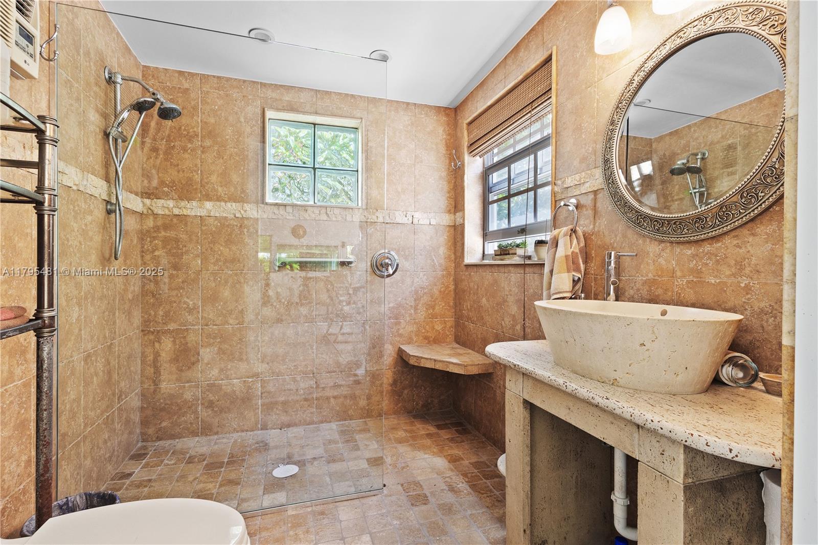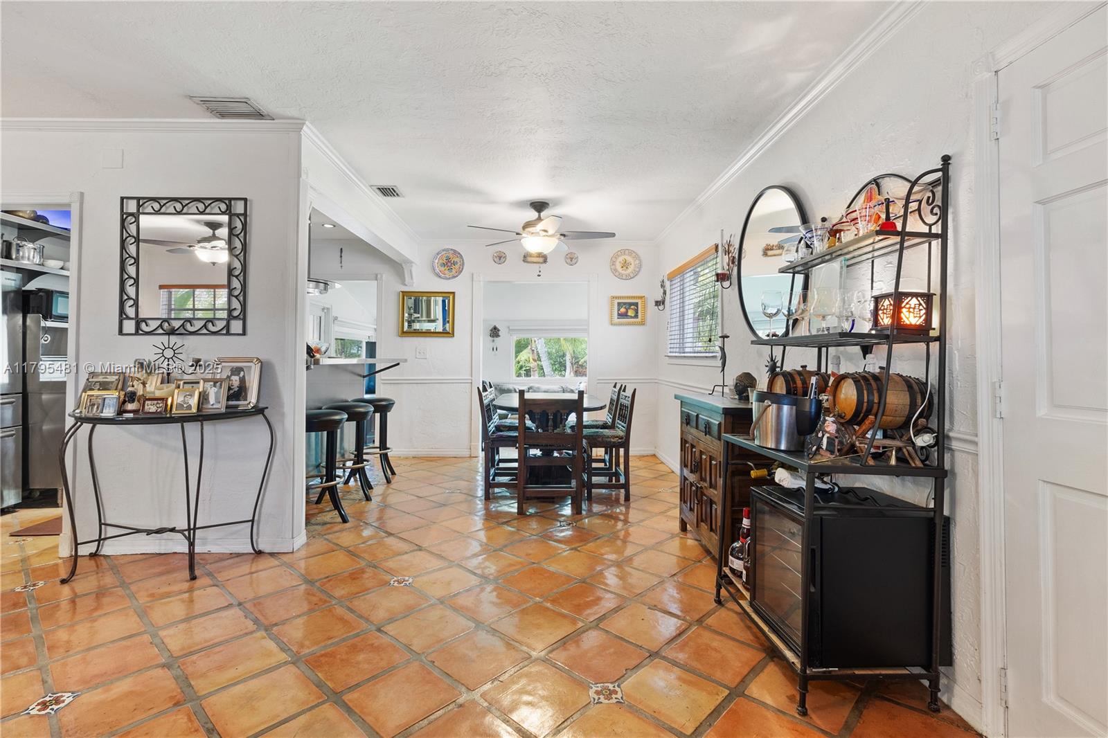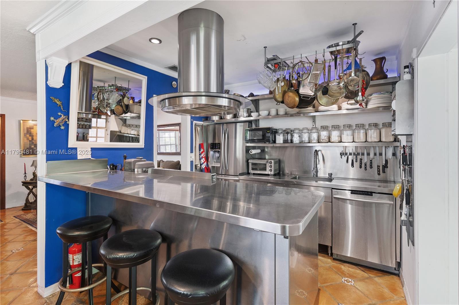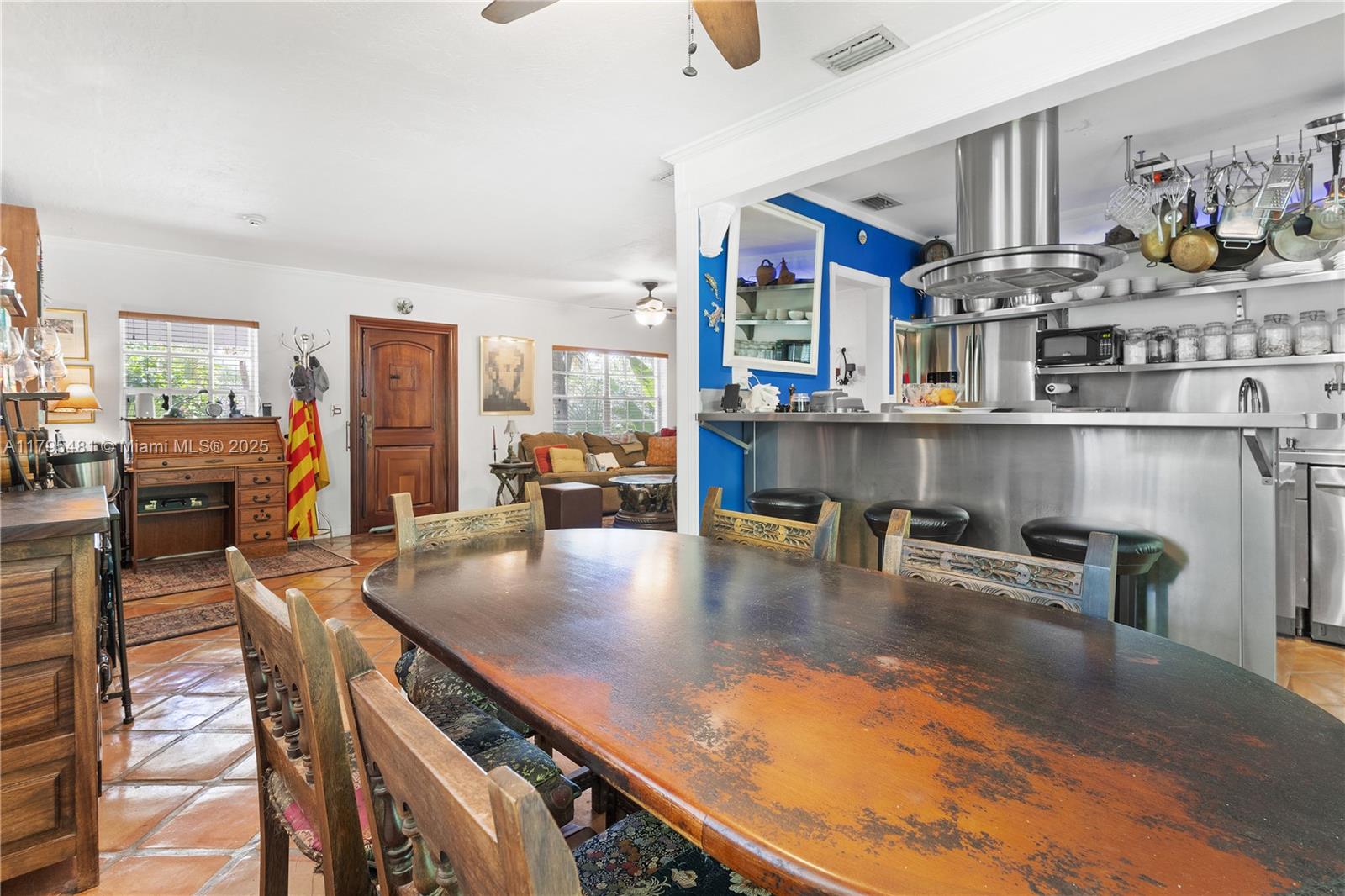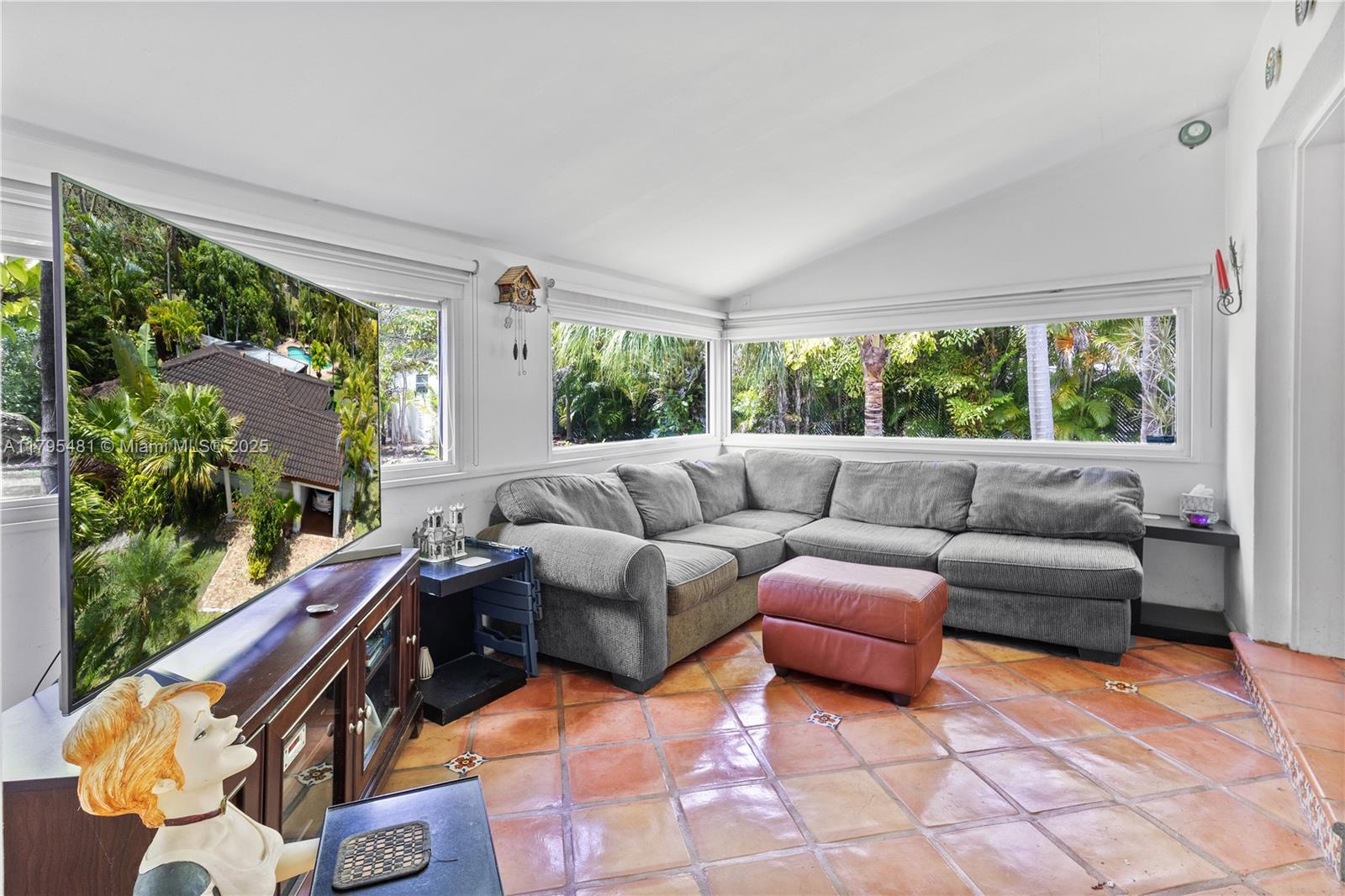 New to market comes this quintessential South Miami home w/gated entrance & fully landscaped lot. Located in the sought after community of Glenvar Heights & set on over 1/3 of acre, this home features 3 bedrooms (3rd bedroom converted into den) & 2 bathrooms, in-ground pool & spa w/ new pump. Tropical landscaping w/ professional lighting, automatic sprinklers with well, mango/coconut fruit trees & queen/ king palms! Chicago pavers in driveway & patio + a 1 car garage. Inside features Saltillo floors & a custom built stainless steel Chefs kitchen, newer washer/dryer. The exterior features a screened lanai, gas outdoor kitchen, stainless steel bbq, pool, spa, cabana bath w/ shower & shed w/ electricity. The home is storm protected by impact windows/doors & aluminum shutters.
