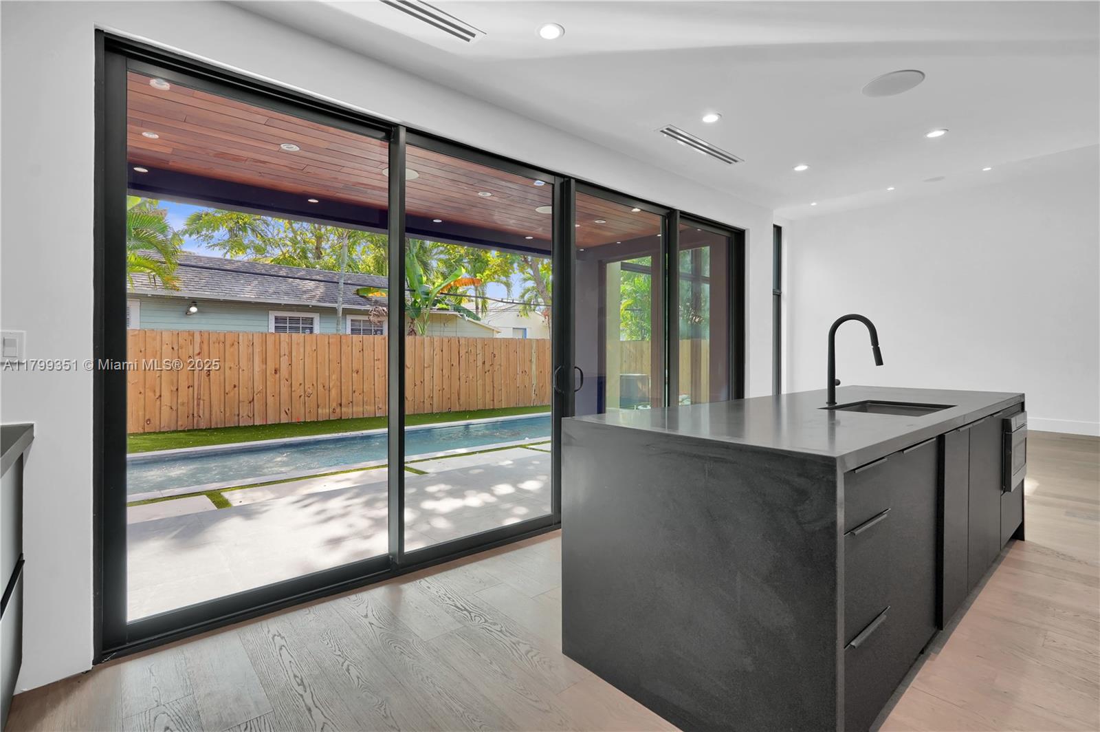 A few blocks from The Miami Design District sits this new construction modern home with 3,642 total SQ/FT. 4 bed/5 bath + den that can be used as a 5th bedroom. Walk through the oversized pivot door and find an open floor plan with 13' ceilings. The tall windows overlook the pool and seamlessly integrate the indoor & outdoor spaces for the ultimate Florida lifestyle. Oak wood flooring, Hansgrohe/Grohe fixtures, impact resistant windows/doors, floor to ceiling kitchen cabinets & Sub Zero/Wolf appliances are just some of the upgrades. Custom closets built out in every room. Heated pool W/salt water chlorinator. Outdoor kitchen W/BBQ, fridge & countertop under covered terrace. 1.5 car garage. Not in a Flood zone. Built over 14' above sea level. Wynwood and the Beaches are a short drive away.