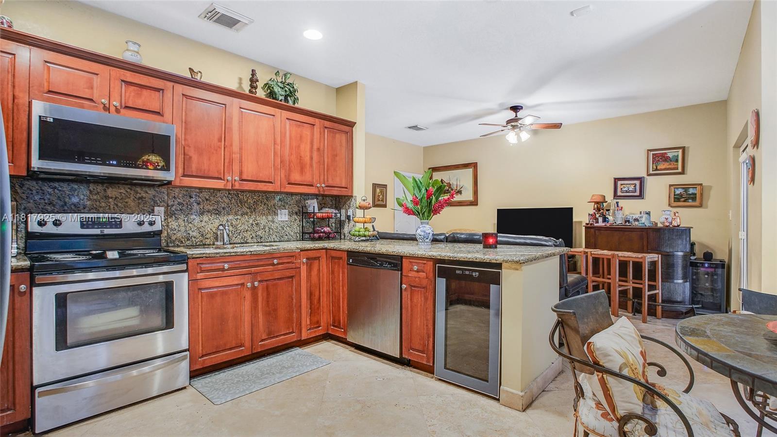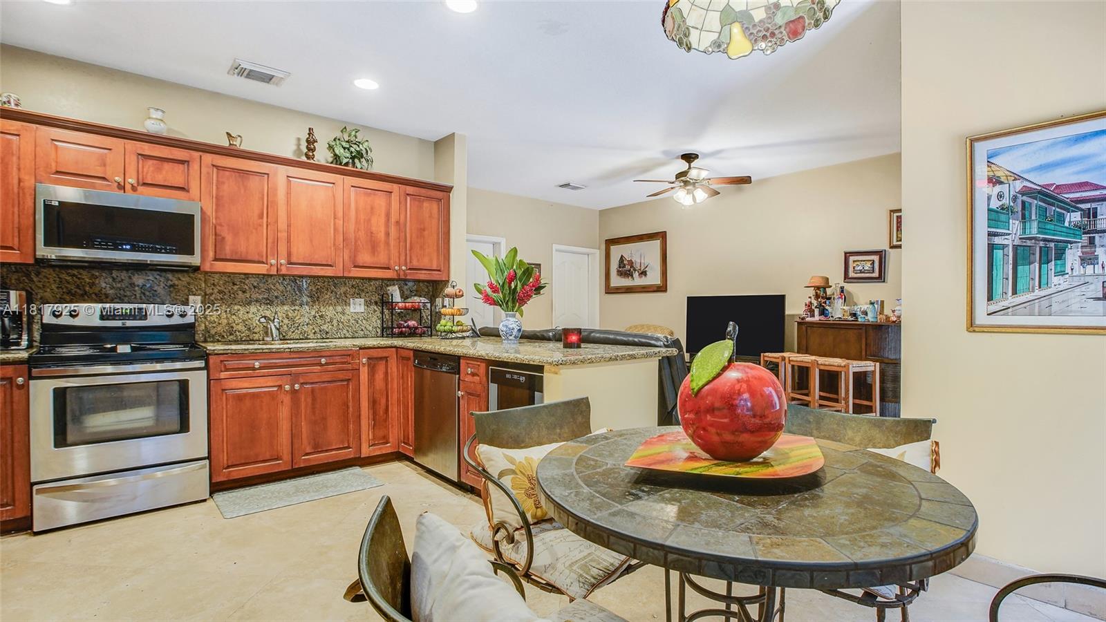 Step into this well maintained home, designed for comfort and entertaining—both indoors and out. Featuring travertine floors throughout, the 3 bed 2.5 baths home offers a spacious living room with high ceilings, a formal dining area and a cozy family room for everyday gatherings. The kitchen is complete with granite countertops, SS appliances and a cozy breakfast nook—perfect for casual meals with family and friends. The large primary bedroom has an en-suite bathroom featuring a whirlpool tub, walk-in shower and double vanity. Outside the covered patio leads to a pool and jacuzzi—ideal for relaxing. Additional highlights include a large, paved driveway, two-car garage that can double as an extra room and easy access to major highways, top-rated schools and many shopping and dining options