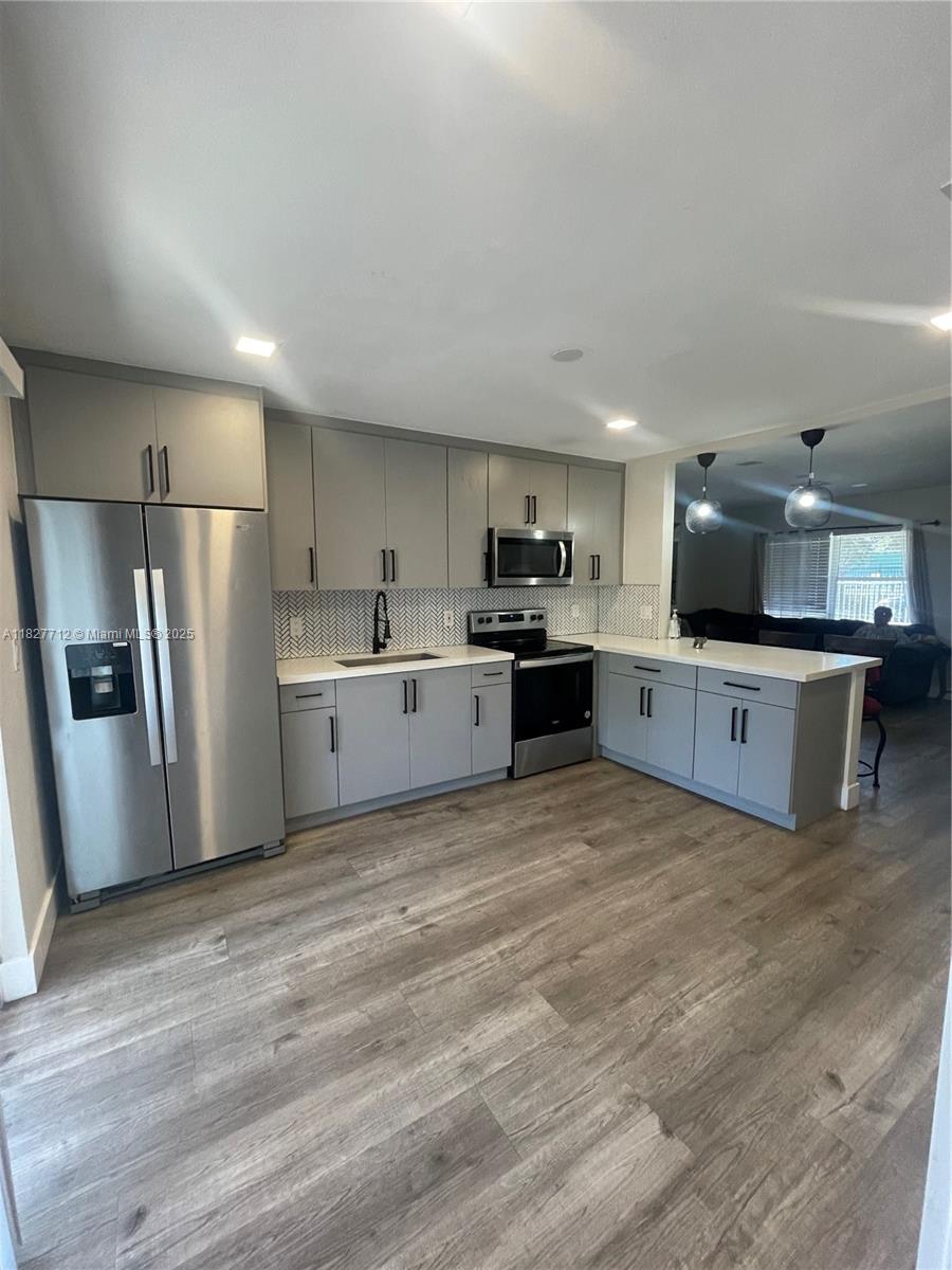 Charming Remodeled 3-Bed / 2-Bath Updated Home. Property features all Modern updates, including a kitchen and Bathrooms, with vinyl plank high-performance flooring throughout. Open gourmet Kitchen, Quartz counter Tops, Stainless Steel Appliances, Big Laundry Room, spacious bedrooms, it is located right in front of a Beautiful park with tennis Courts, walking trails, surrounded by beautiful nature, Spacious backyard, Perfect for entertainment, Centrally located near the beaches 20 minutes to Miami Beach,15 minutes to Wind Wood.