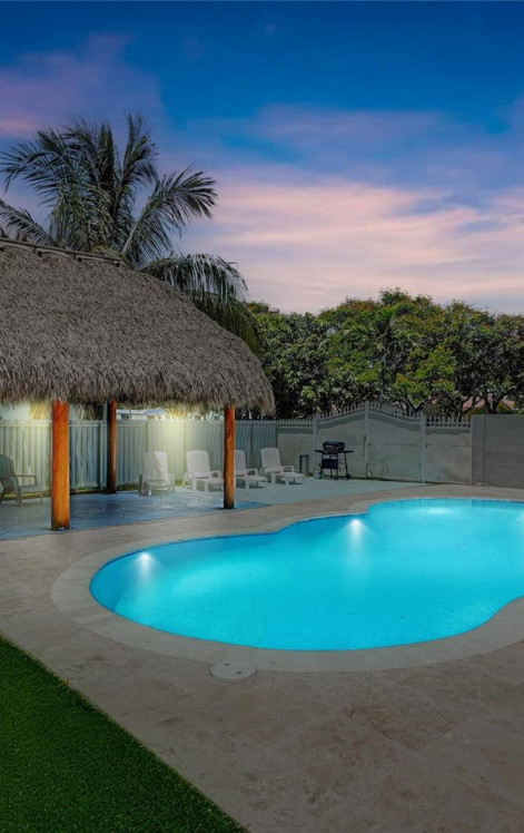 Welcome to the enchanting neighborhood of Biscayne Gardens, just North of Biscayne Park!! Over $275K in top to bottom renovations! This charming 4-bed, 2-bath over 2000 TSFT sanctuary has impact windows & new roof means effortless living. Enjoy a recently resurfaced heated pool with paver patio, high ceilings, recessed lighting, & large rooms. Features include renovated baths, a big kitchen with stainless steel appliances & gas range, laundry room, A/C, water heater & garage converted into a game room with its own mini split. Room for a cabana bath & Tiki Hut for outdoor relaxation. INVESTORS, home already approved by the city for Airbnb / STR. Massive 10,434 sqft corner lot with NO HOA! Solar panels to be installed soon. Near I-95, Miami Airport, Fort Lauderdale, minutes from the beach!