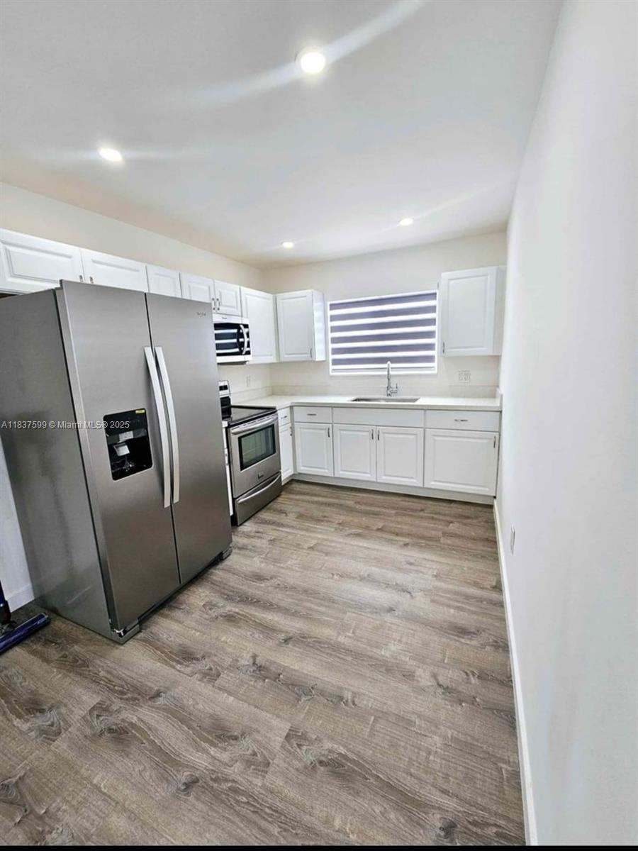 Welcome to this beautifully remodeled 3-bedroom, 1-bathroom single-family home, where modern updates meet classic charm. Step inside to discover a bright and airy open floor plan featuring brand-new flooring and recessed lighting. The updated kitchen boasts stainless steel appliances, custom cabinetry.