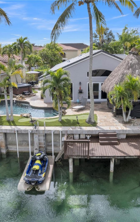 Rare opportunity in the highly sought-after, guard-gated Three Lakes community of West Kendall, prized for its boat & jet ski friendly 100+ acre lake—one of the few of its kind in Kendall. This 3/2 waterfront home sits on an interior canal with direct lake access & features a private wooden dock plus a floating dock for personal watercraft, while the community also offers a dock & boat ramp for shared use. Enjoy resort-style outdoor living with a lagoon-style rock waterfall heated pool, 7-person hot tub, an entertaining Tiki Hut and a low-maintenance putting green. Backyard features deluxe artificial turf creating a clean, easy-care space ideal for relaxing or entertaining. Plumbed ready for a future outdoor 3rd bath, offering added flexibility for outdoor living. Major improvements include a 2025 flat tile roof, New hurricane-impact windows & doors ,reinforced attic roof rafters, hurricane-rated garage door, & newer hot water heater—providing peace of mind & insurance savings. Ideally located near abundant shopping, dining, and everyday conveniences. Interior features travertine tile in main living areas, deluxe blinds, LED lighting, upgraded kitchen with induction range, hi tech refrigerator, whole-house water filtration & reverse osmosis system. HOA includes 24/7 security gates, clubhouse, fitness center, community pool, tennis, pickleball, and lake access. Come experience the waterfront lifestyle that makes Three Lakes one of West Kendall’s most desirable communities.
