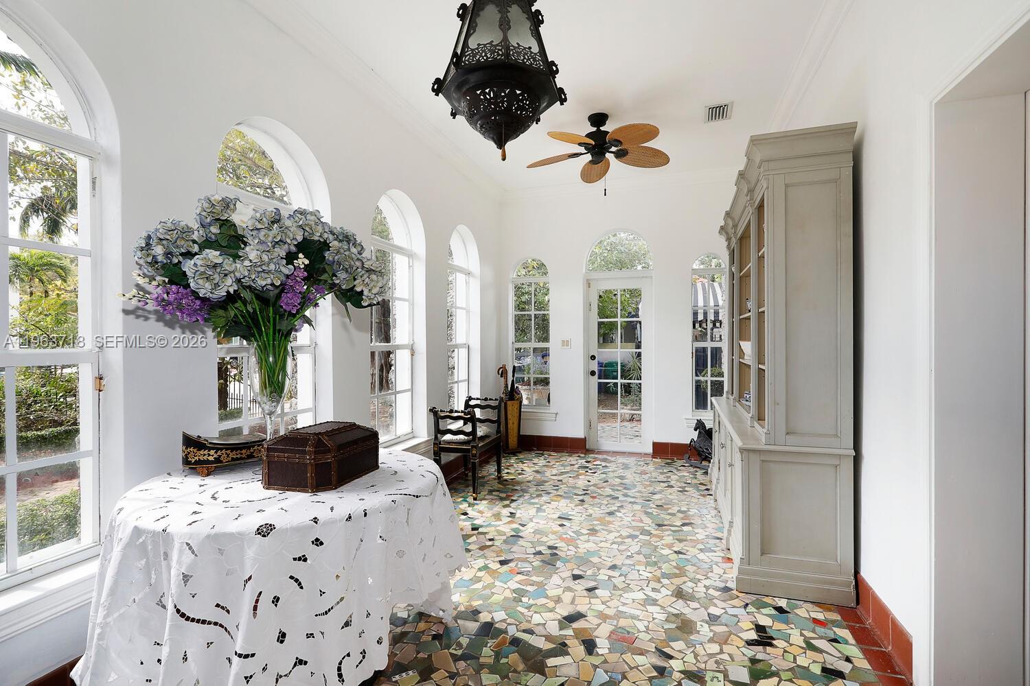The Miami Stone House offers a rare opportunity to own a piece of Miami's history. Built in 1924, this Mediterranean Revival masterpiece, clad in oolitic limestone, stands as one of the city's few remaining homes from its formative era. As Miami celebrates its centennial in 2026, this property represents an irreplaceable piece of architectural heritage. The main residence showcases 1920s grandeur: soaring 10-to-16-foot ceilings, original stained leaded glass interior glazing, marble floors, and a working fireplace. Meticulously renovated in 2004, the home was restored from foundation to roof, while preserving its architectural soul. After two decades, this thoughtful renovation now invites a new steward to refresh and reimagine the spaces. The walled garden compound evokes old Miami romance—a raised terrace (700 SF) beneath a lush tropical canopy, pool and patio spaces, mature tropical fruit trees and the original stone entrance still standing sentinel. The 624-square-foot poolside cottage, redesigned in 2021, offers a full kitchen, bath, and spacious bedroom. Located in Shenandoah, one of Miami's most walkable neighborhoods, features tree-lined streets, parks, Michelin-recognized dining, and shops. Little Havana's vibrant scene is blocks away and Brickell's financial district is just one mile away—ideal for urban professionals seeking historic character with modern convenience. Main House 2/2.5 w/loft, living room, formal dining, den, sitting room and library. Cottage 1/1.