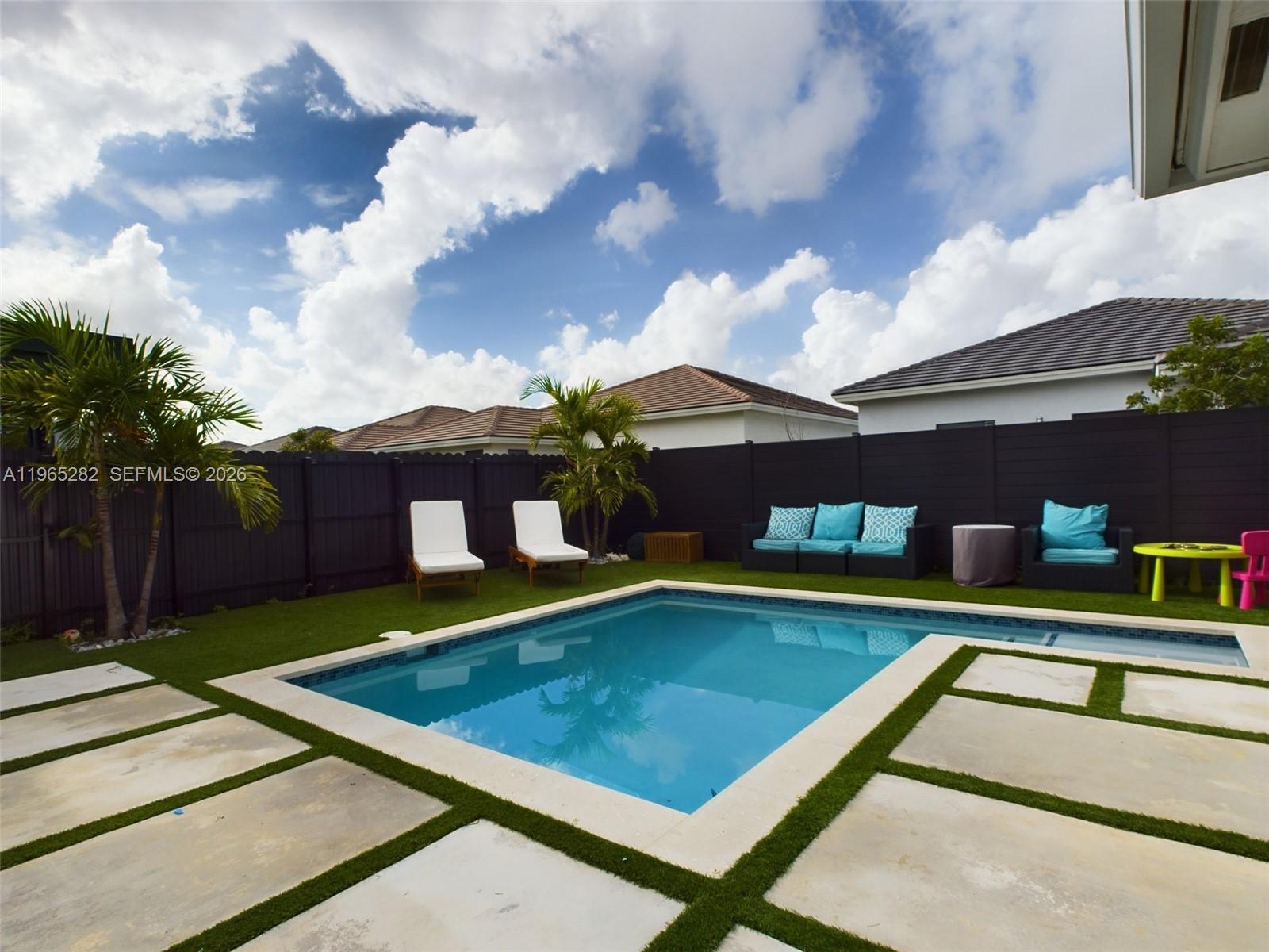 This exceptional single-story residence offers modern living with 4 bedrooms and 3.5 bathrooms, thoughtfully designed for comfort, functionality, and entertainment. The home features 2,276 SF of air-conditioned living space and sits on a 5,116 SF lot,Single-story layout – no stairs, No HOA fees, Parking for up to 4 vehicles, Heated swimming pool and built-in BBQ area — perfect for outdoor living and entertaining,Private home theater room ideal for family movie nights, Dedicated office that can be converted into a home gym