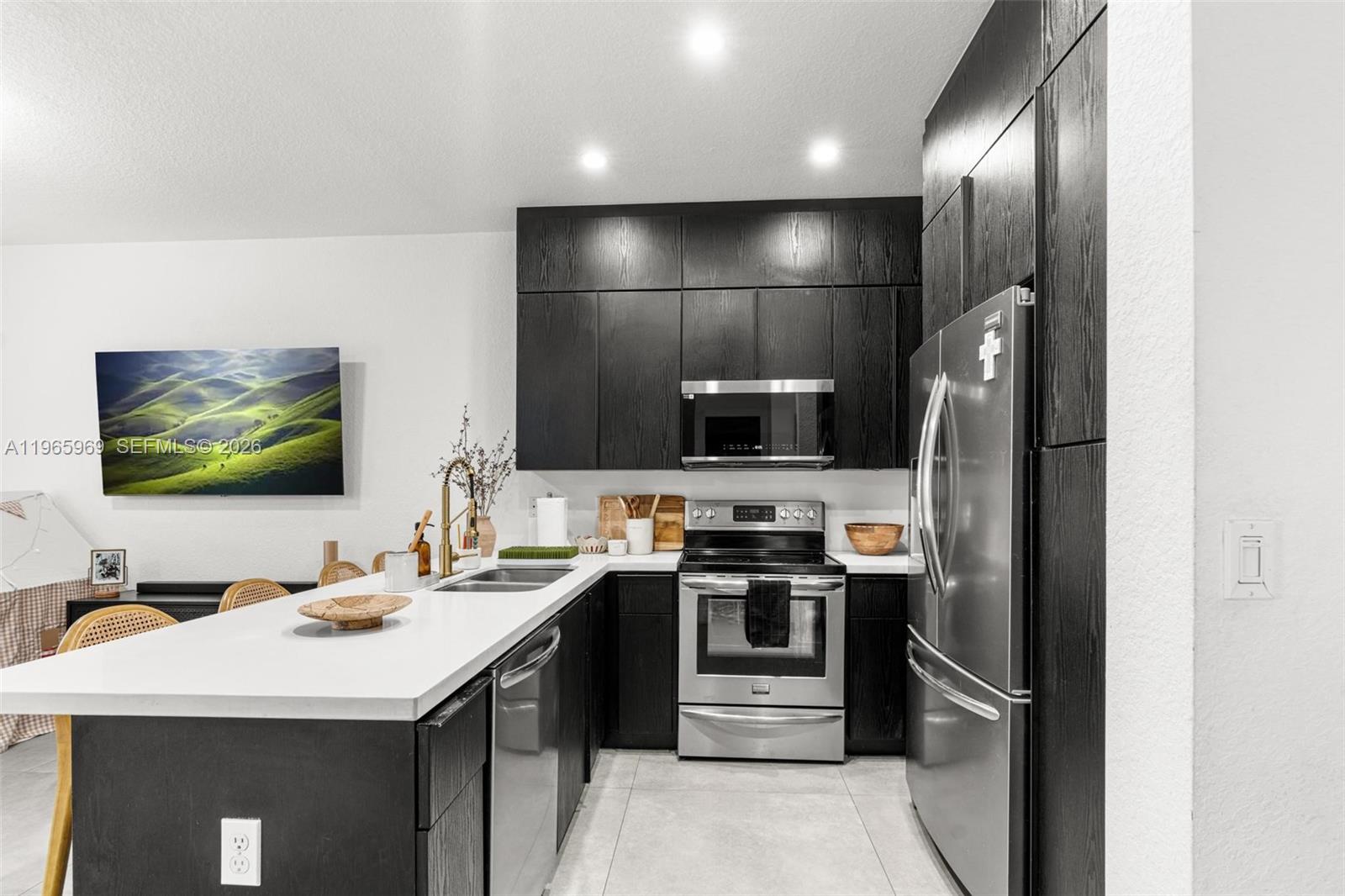 Charming 4-bedroom, 3 full-bath townhouse located in a highly desirable neighborhood! This well-maintained home offers a convenient first-floor bedroom and full bath, perfect for guests or multi-generational living. Enjoy a spacious patio ideal for gatherings and outdoor entertaining, along with additional storage space for added convenience. The home features impact French doors, a walk-in closet in the primary suite, and stunning modern 36” x 36” Evo Gray porcelain tile throughout the downstairs. Low HOA of just $70 per month. A wonderful opportunity to own a beautiful, move-in-ready home!