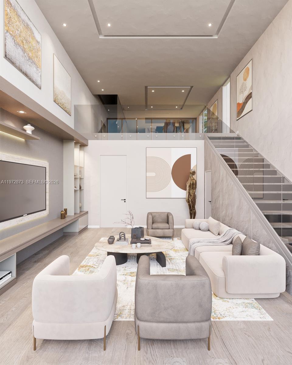 Welcome to The MiMo 62nd Sky Collection, two exclusive residences in the heart of the MiMo District. This freestanding luxury property features two side-by-side, three-story homes each with a private pool & rooftop terrace. Each residence offers 4 bedrooms & 4.5 bathrooms, seamlessly blending the scale of a single-family home with the sophistication of a modern, design-forward build. The first level is dedicated to entertaining, highlighted by 22-foot ceilings, an expansive lounge & direct access to a private ground-floor pool. The second level unveils an open-concept living & dining space centered around a chef’s kitchen featuring custom European cabinetry, an oversized eat-in island, and Fisher & Paykel appliances. A seamless blend of light and scale defines the interiors, with floor-to-ceiling windows and soaring ceilings throughout, complemented by bespoke finishes and custom-designed doors that elevate every space. The third level is anchored by the primary suite thoughtfully appointed with a spa-inspired bath featuring a two-person shower, soaking tub and an expansive custom walk-in closet. Two additional bedrooms, each with en-suite baths and tailored closet systems, complete the upper level. The rooftop terraces offer the ultimate in outdoor living, designed for customization with endless upgrade options. The residences share a secured entry lobby & a private garage with direct access to each home. Ready for delivery, schedule your tour today.