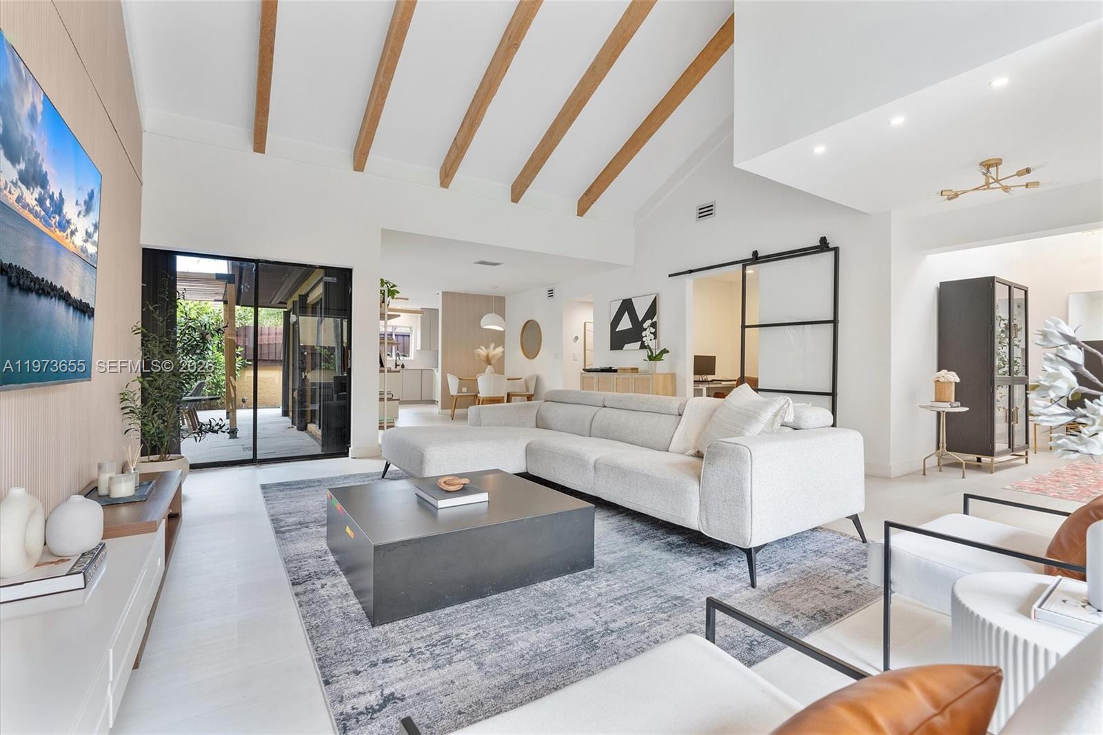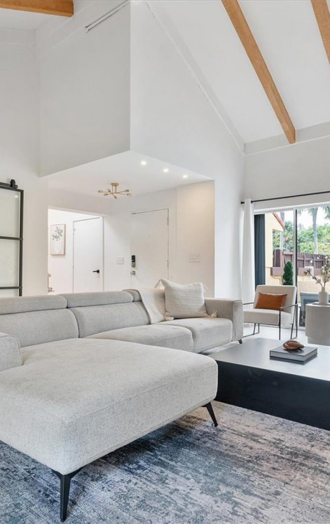 ***OPEN HOUSE APRIL,11. LOOK FOR MARISA KOOIMA ON CALL BOX FOR ACCESS*** Welcome to this completely redesigned 2-bedroom, 2-bathroom home with a flex room perfect for a den, office, or guest space. The open-concept kitchen is the heart of the home, featuring a quartzite waterfall island and 2025 Samsung Bespoke smart appliances, ideal for cooking or entertaining. Smooth skim-coated walls and ceilings, fresh white paint, luxury vinyl flooring, and square hi-hat lighting create a bright, modern atmosphere throughout. Exposed wood beams have been sanded to their natural color, adding warmth and character, while decorative slat wall panels, custom wallpaper, updated air vents, modern fixtures, and LE Grand light switches elevate the details. The garage is already plumbed for an additional bedroom and bathroom, with plans available, offering a rare opportunity to expand living space. Just outside you'll find a heated saltwater courtyard pool with a papered deck, perfect for private, year-round enjoyment. Major updates include a 2024 flat roof, 2018 HVAC, and updated water heater. Maintenance includes paint, WiFi, cable, and front yard care. A turnkey home with luxury finishes, thoughtful upgrades, and room to grow. This property will not last.