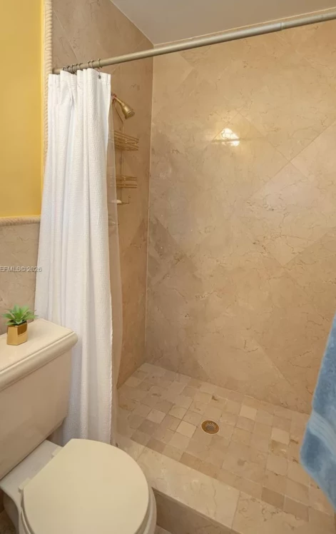 Bright living area features: Italian marble flooring throughout living room, dining room and kitchen as well as both hallway bathrooms. An abundance of natural light enhances the clean classic look. Both bathrooms also boast, floor to ceiling Italian marble in the shower and tub area. Both marble bathrooms are further enhanced by polished brass Pfister bathroom fixtures.