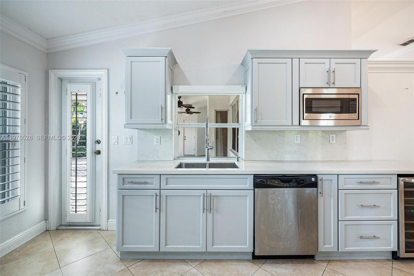 Gorgeous single-family corner home in the highly desirable community of Lakes of the Meadow. This home is spacious and airy with high vaulted ceilings and a lot of natural light. Features a huge master bedroom with an suite bathroom and large walk-in closet, fully tiled 2 car garage, fully remodeled open kitchen with stainless steel appliances, including a wine fridge and plenty of room for dining, living and entertaining. The house sits on a quiet street and offers a great sized backyard with enough room for a pool, barbecue and more. This is a well-established community close to plenty of shopping, excellent magnet schools, and restaurants.