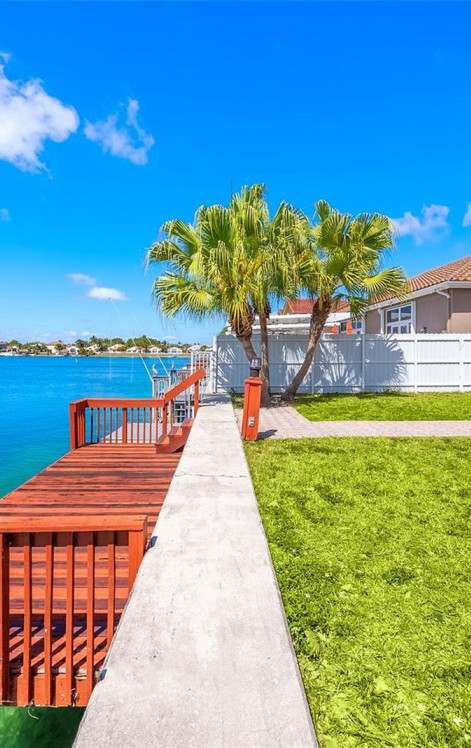 Upon entry, a bright double-height living room welcomes you with abundant natural light and beautiful views of the lake. The kitchen features a breakfast nook overlooking the water, while the backyard and private dock provide peaceful waterfront living with direct access to boating and swimming.The main level also includes a convenient half bath, a laundry room with sink, and a 2-car garage.Upstairs features all four bedrooms, including a spacious primary suite with private balcony overlooking the lake, walk-in closet, and a generous bathroom.Residents enjoy excellent amenities including 24/7 guard-gated security, clubhouse, fitness center, community pool, tennis and pickleball courts, and lake access. Well located near abundant shopping, dining, and everyday conveniences.