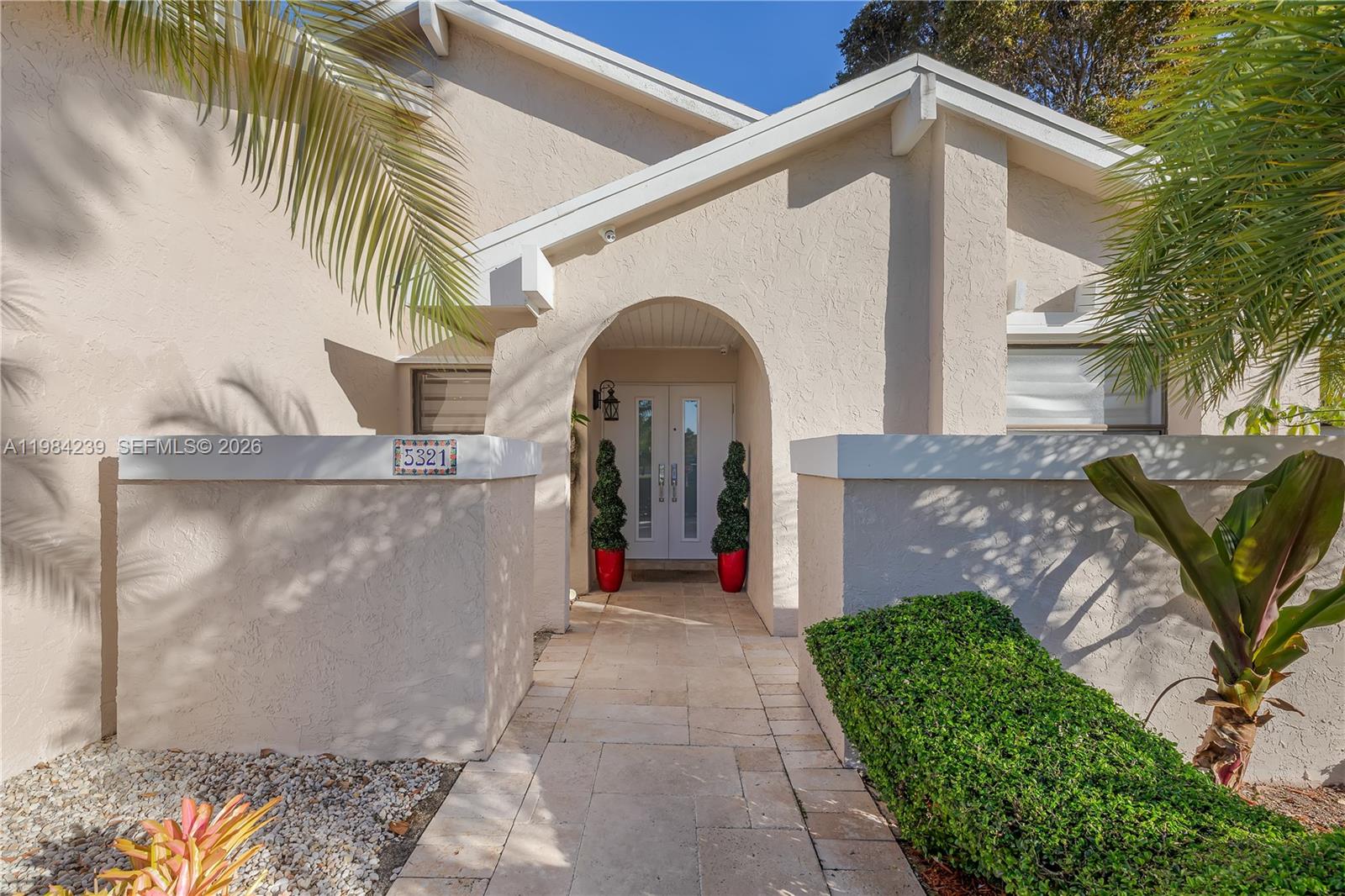 Situated in Lakes by the Meadow, this corner lot home boasts all the modern amenities. The property features three bedrooms and two bathrooms, as well as a swimming pool. This residence offers a variety of upgrades, including a renovated kitchen, impact-resistant windows, a remodeled bathroom, a whole-house water softener system, a cutting-edge security camera system, and an electric vehicle charging station. The backyard provides a resort-style retreat to relax after a busy day. This home is sure to impress.