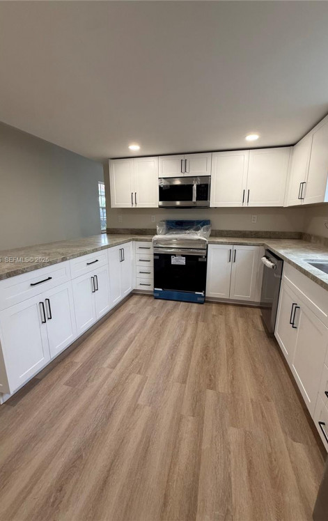 Completely reimagined from top to bottom, this fully renovated residence offers a seamless blend of modern design and thoughtful craftsmanship while maintaining its original layout for optimal functionality. Every detail has been carefully curated. The exterior has been entirely transformed with new stucco and sealing, delivering both durability and striking curb appeal. Step outside to enjoy brand new balconies crafted with premium thermal ash wood, adding a warm, sophisticated touch to the home’s outdoor spaces. Inside, the kitchen stands as a true centerpiece, featuring elegant shaker-style, lacquer-finished millwork paired with stunning Taj Mahal countertops perfectly balancing style and practicality. Throughout the home, you’ll find new laminate flooring, solid oak window sills, and beautifully finished solid oak stair treads that elevate the overall aesthetic. Every room is equipped with brand new custom closets and sleek single-panel doors, while the bathrooms have been completely remodeled with new vanities, fixtures, and toilets offering a spa-like, move-in-ready experience. To complete the renovation, the home features brand new impact sliding glass doors and a new front entry door, providing peace of mind, energy efficiency, and a polished finish. This is a rare opportunity to own a meticulously upgraded home where no detail has been overlooked truly turnkey and ready for its next owner.