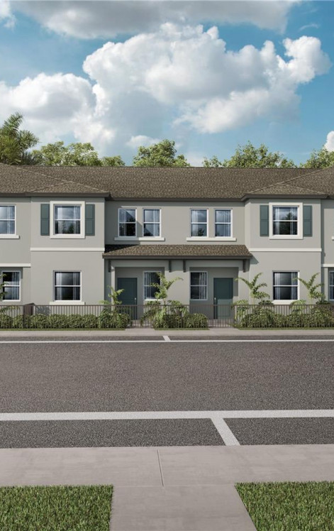 On the first floor of this new two-story townhome is a spacious and flexible open plan that blends the kitchen, living and dining areas to maximize interior space. On the second level are two secondary bedrooms and a spacious owner’s suite that features a full bathroom and walk-in closet. A rear two-car garage is ready for any parking or storage needs.