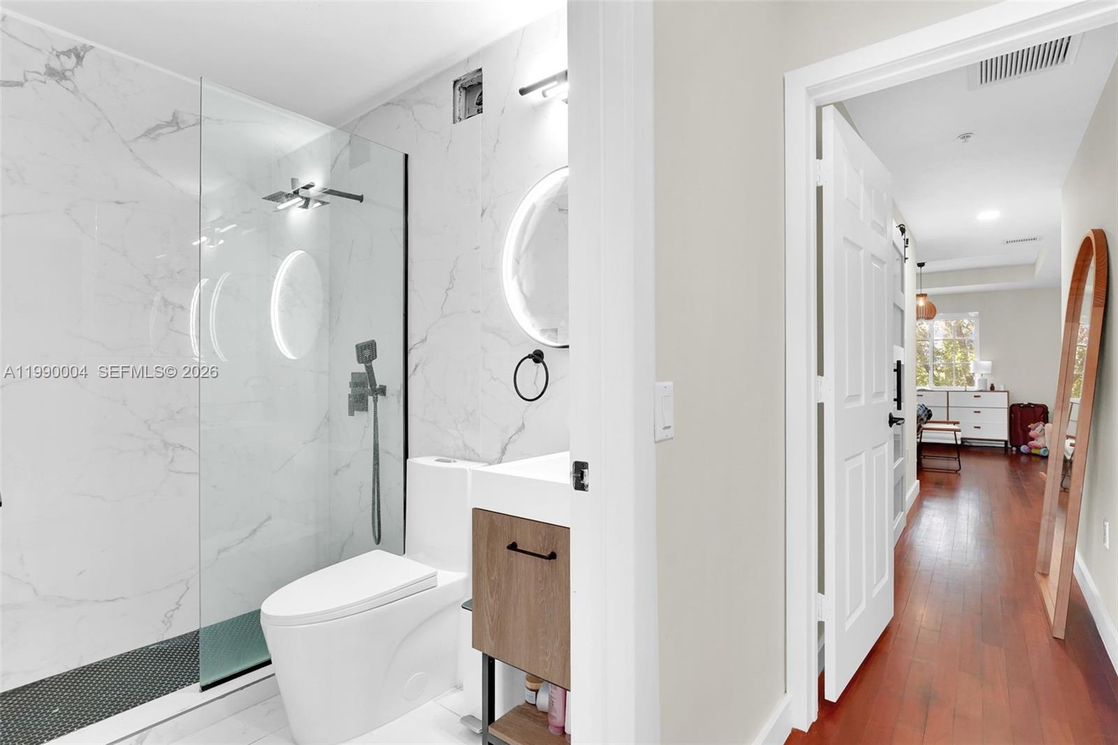 Beautifully remodeled trilevel townhouse with stunning wood flooring throughout and custom-built closets. With additional room on the ground level, which can easily be used as a third bedroom, office, or additional living space. Both bathrooms have been fully remodeled with high-end finishes. Located in a gated community,1-car garage, an additional assigned parking space, and guest parking. Residents enjoy a well-maintained community with a swimming pool and beautifully landscaped green areas, ideal for walking and enjoying the outdoors. The prime location is just minutes from Miami Shores, close to top-rated schools, Wynwood, the Design District, and Biscayne Blvd—providing easy access to restaurants, shops, and daily conveniences. A cozy, move-in-ready home in one of Miami’s most desirable neighborhoods!