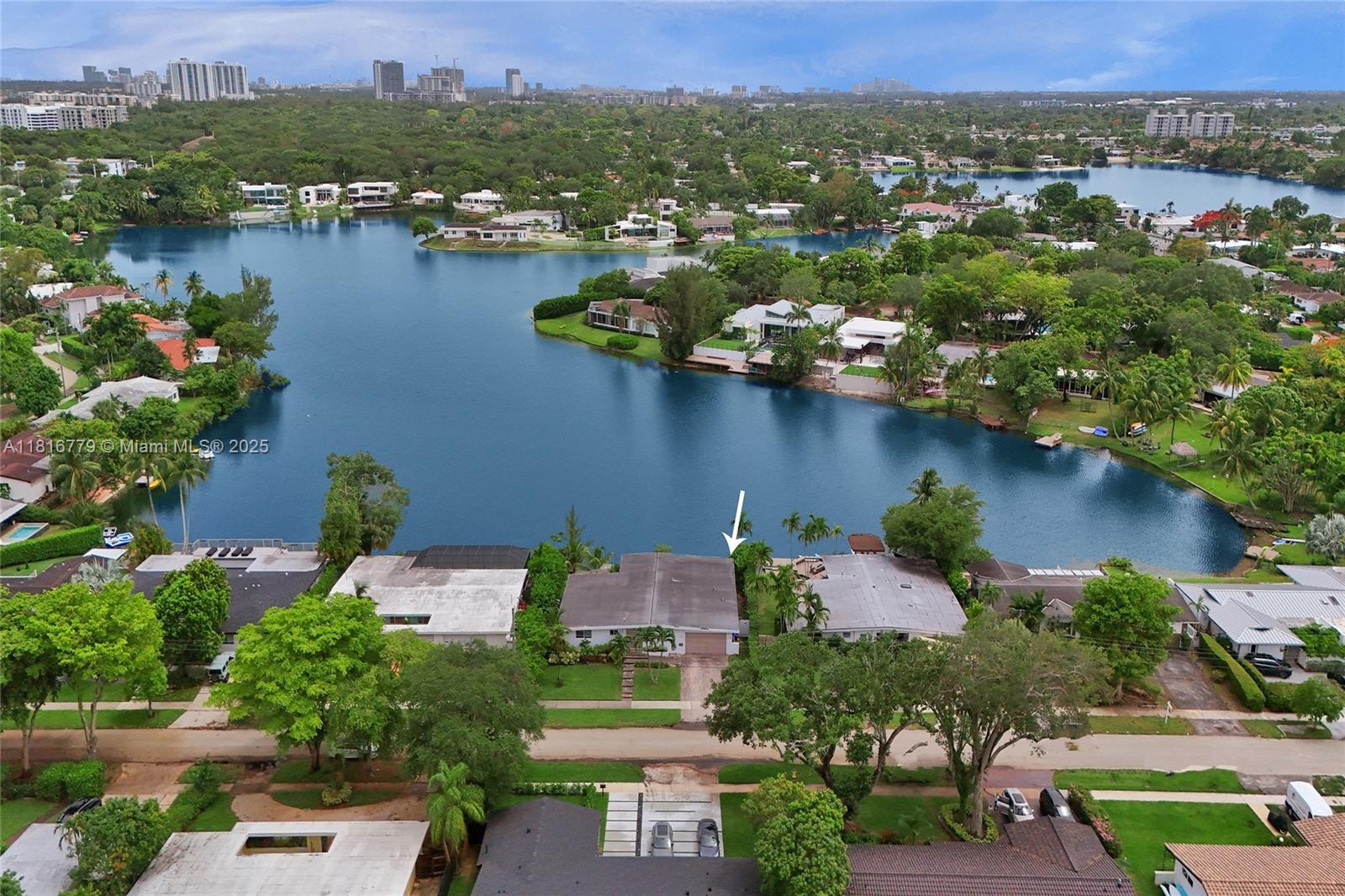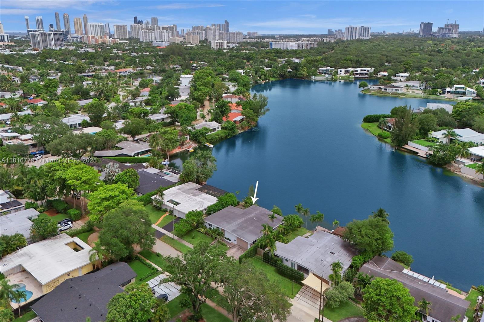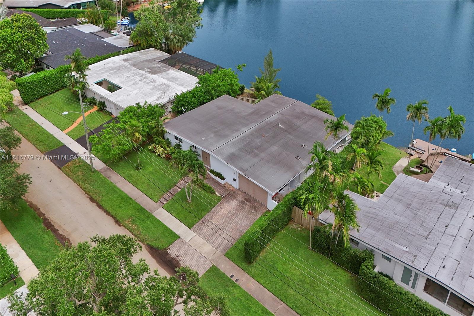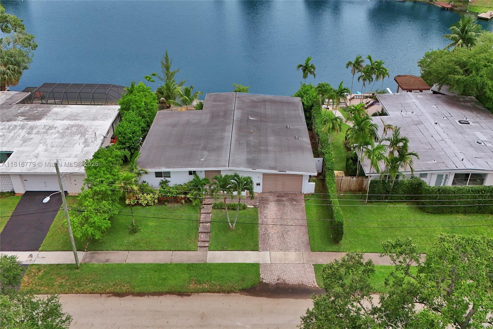 Exceptional opportunity in prestigious Sky Lake! This 4-bed, 3-bath waterfront residence offers endless potential—renovate the existing layout to suit your vision or capitalize on approved architectural plans for a full upscale transformation. Plans feature increased square footage, raised ceilings, added bedrooms, enhanced storage, and a resort-style pool with deck. Enjoy direct lake access for kayaking or swimming from your private backyard. With only 63 homes, this exclusive enclave offers privacy and prime location near Aventura, top schools, dining, and major highways.