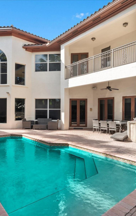 Exquisite oversized Brookman-Fels home in the gated Presidential Estates, ideally situated in one of the best locations facing a serene lake and within walking distance to the new amenities clubhouse. This custom 4,780 sq ft gem on Ambassador Court sits on a 9,500 sq ft lot. Enter through a grand foyer with soaring ceilings into a stunning open floor plan. The 5-bedroom, 5.5-bathroom home boasts spacious rooms, a gourmet chef’s kitchen with premium appliances, a dedicated office, and a full-service quarter. Enjoy tranquil lake views from the primary suite’s balcony. The lush backyard oasis features a custom pool, a summer kitchen, open and covered patios, and ample guest space. The garage offers extra storage or the potential to convert into additional space, such as a gym or game room.
