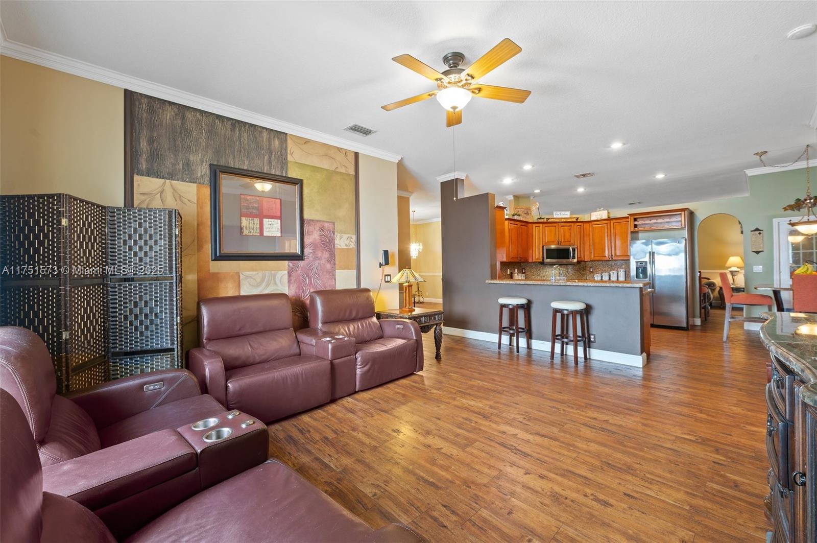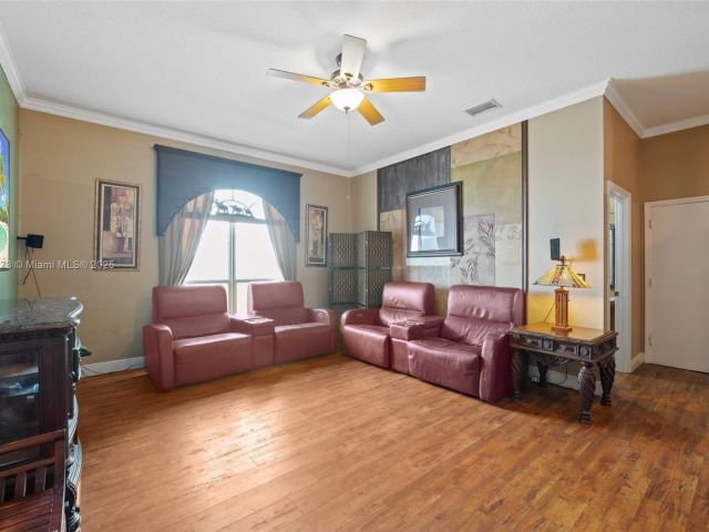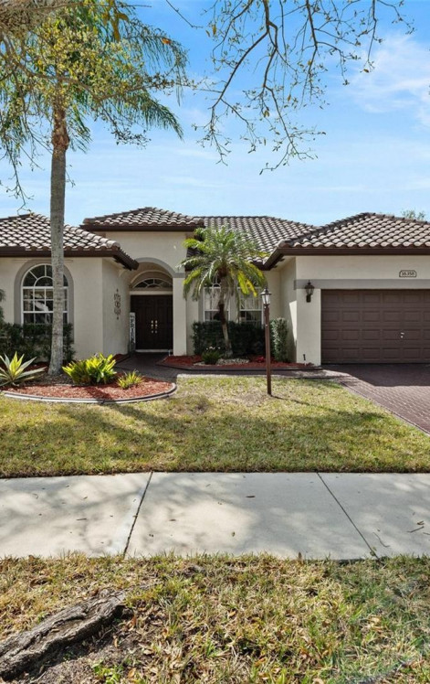 This 5 bedroom 2.5 bath single-story Princeton IV Model executive home is located in the prominent gated-community of Stoneridge Lake Estates. The airy home model design is perfect for active family living, entertaining and enjoyment. The split floor-plan includes formal living and dining, complimented by an accommodating family room and oversized man cave. To further enhance your tropical lifestyle living experience, a 525+ sf covered and screened-in lanai allows for endless days of outdoor living and relaxation, and provides a seamless flow of interior/exterior living area. Located near top-rated public schools, this home offers the perfect blend of privacy, comfort, and functionality, making it ideal for the discerning buyer. The roof was replaced in 2018.