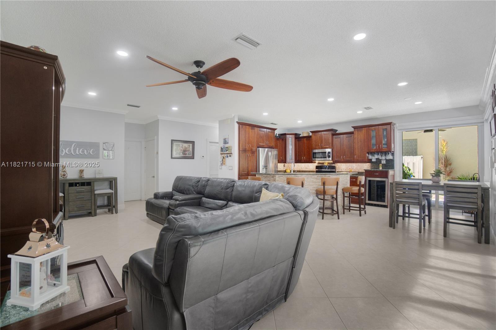 This Stunning 4 BD/ 2.5 BA home features new Impact Windows and doors. l** The Seller is willing to contribute up to $10,000 towards Buyer's closing cost or rate buy-down** The outdoor Oasis showcases a grand pergola with a custom-made bar perfect for entertainment. Magnificent high ceilings with chandeliers, gourmet kitchen with wood cabinets, SS appliances, wine fridge and open layout to a spacious family room. Primary suite features seating area, walk-in closet, dual vanities in beautifully renovated bath. Engineered wood floors upstairs, tile downstairs. Classic Landings, a gated community is located near Great schools. Community Park, tennis, soccer, basketball, baseball! HOA includes internet, cable and 4 community pools and tot lots.