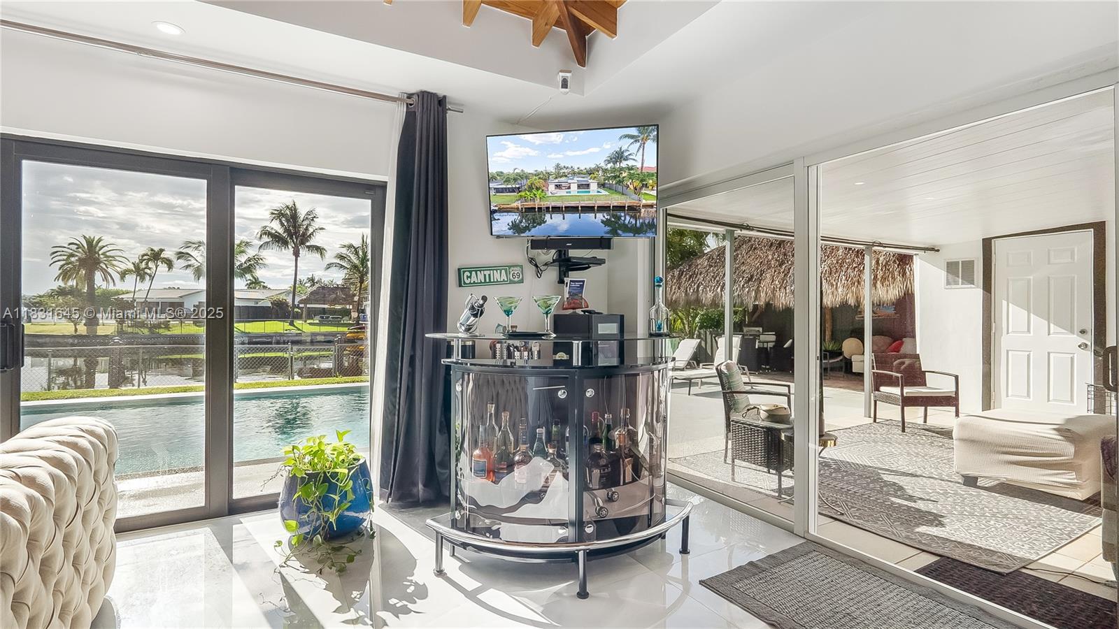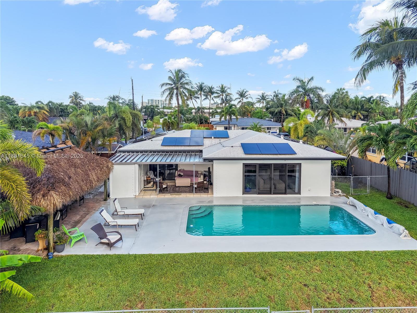 large tropical tiki hut, an expansive pool deck and open backyard, and a new 80’