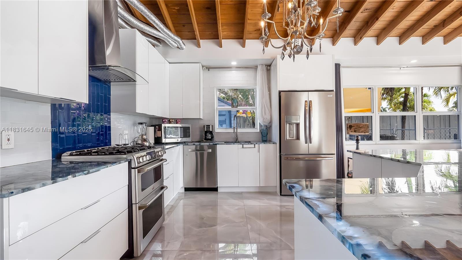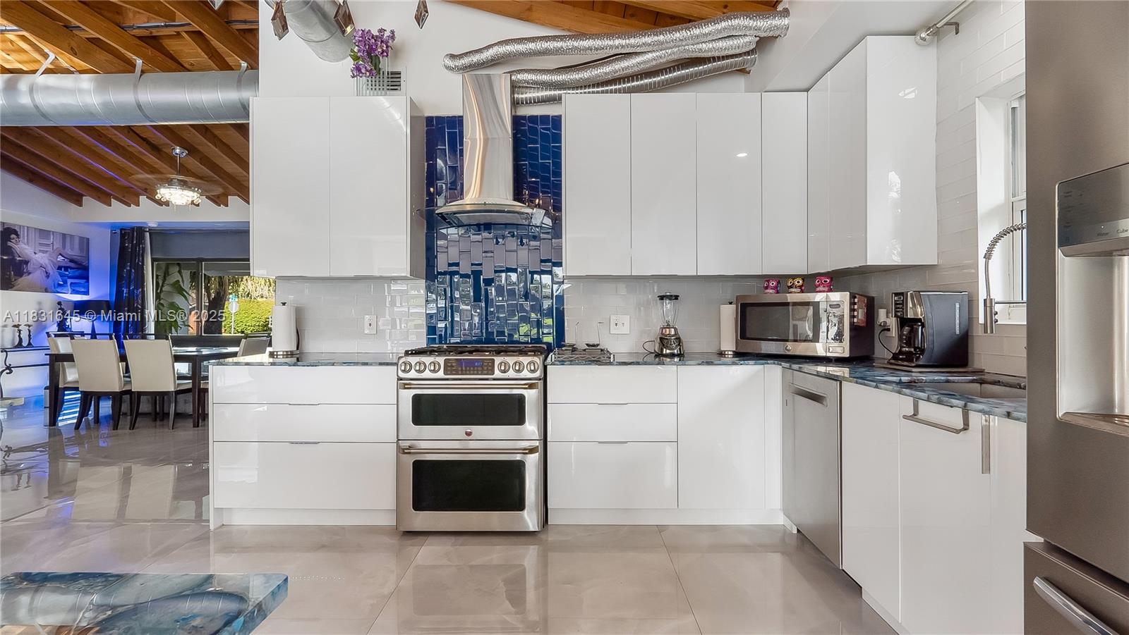 German cabinets, deep blue semi-precious agate countertops, impact windows and