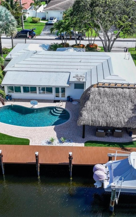 Situated on 75' ft of waterfront with deep water access and no fixed bridges! NO HOA. This stunning home in the desirable Pompano Isles community is truly a boater’s dream offering direct ocean access just minutes to the Intracoastal. The sun filled interior features an open floor plan with porcelain tile flooring throughout. The modern white kitchen boasts quartzite countertops, top-of-the-line appliances, and a gas range and oven. Enjoy peace of mind with impact windows & doors, updated plumbing & electric, and a beautifully resurfaced pool. The spacious primary suite offers serene pool views and a spa like ensuite bath with oversized dual shower and double sinks. Step outside to your private waterfront oasis featuring a newer resin dock, boat lift, tiki hut and a small golf putting green, perfect for relaxing or entertaining.