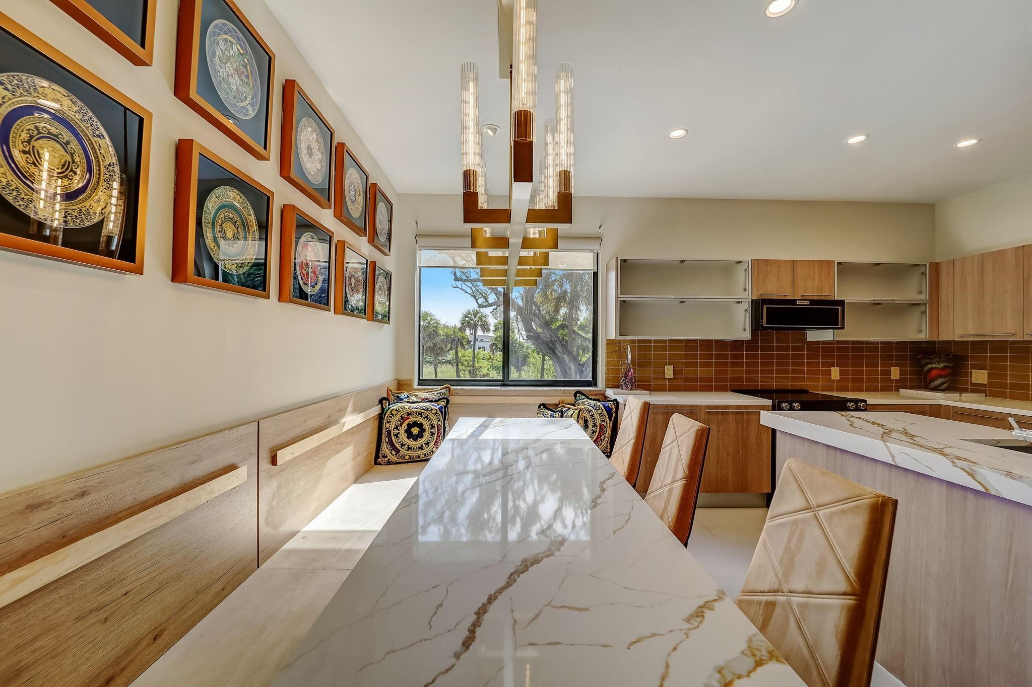 Gourmet chef’s kitchen with quartz counters, premium appliances & custom dining setup